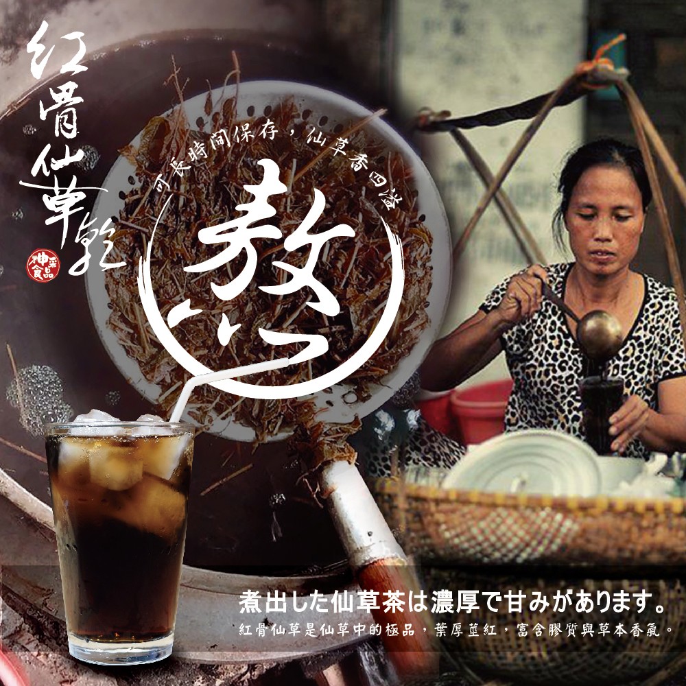 嚴選台灣紅骨仙草自然風乾,全程不添加防腐劑與人工色素。