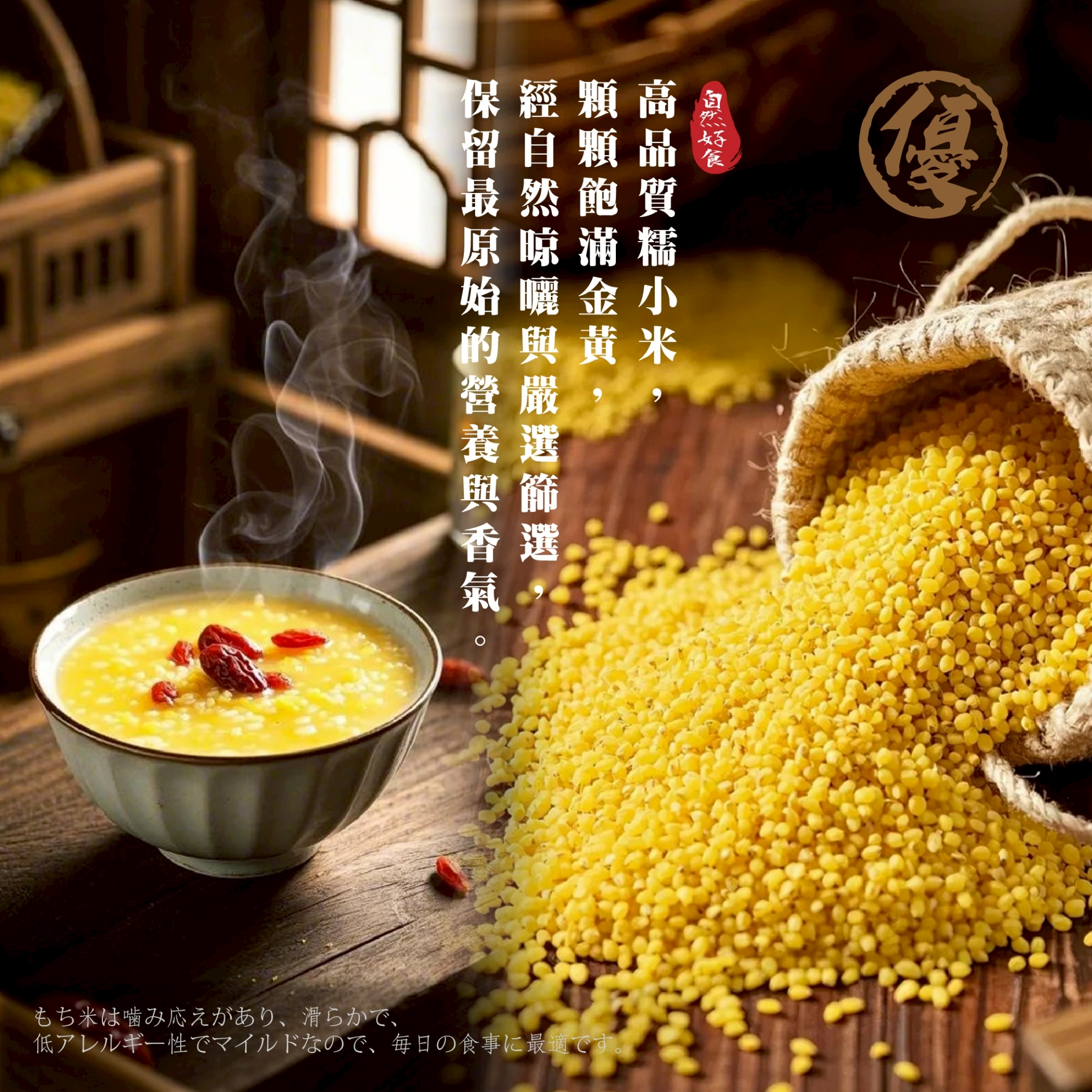 🥣口感Q糯,營養豐富,是現代人理想的黃金養生主食! 💛 養生之選:富含膳食纖維、維生素B群與多種礦物質,養胃護脾、調理體質,特別適合長輩、與術後調養。 💰 市價平實:價格遠低於進口穀物,適合家庭日常備糧。 🍴 飽足感強:少量就能飽,減醣族群與控制飲食者的好選擇。 🍃 不易脹氣:比一般米類更溫和不刺激,腸胃敏感者也能安心食用。 🌾 營養加乘:富含膳食纖維、鐵質、蛋白質,養胃又易消化,長輩與孩童都適合。 料理方式 / 創意吃法 🥣 或直接煮粥,加入地瓜、蔬菜,營養滿分 🌾 小米與藜麥、糙米混合煮飯,膳食纖維再升級 🎃 小米與南瓜一同熬煮,加椰奶後攪拌滑順 🔸 創意吃法推薦 🍵 養生茶飲底料:乾炒後可作為茶飲底料,增香又暖胃 🧁 無麩質小米糕:加蜂蜜與椰油製作養生甜點,零負擔 🥗 小米能量碗:加蔬菜、水煮蛋、橄欖油,成為均衡一餐 🥣 黃金米糊:與南瓜一同熬煮,加些椰奶,變身香濃早餐粥 🍡 糯小米麻糬球:將熟糯小米搗成糰,加入堅果或紅豆餡,做成可口甜點 🔥 一碗飯的革命,一口就愛上! 換個主食,讓健康輕鬆上桌!契作糯小米,Q黏滑順、低敏溫和,是您每日飲食的加分夥伴。 ✅ 養胃低刺激.老少咸宜 ✅ 多元料理.煮飯、煮粥、做點心都OK! ✅ 健身減醣主食革命,吃出飽足感不怕胖! ✅ 養顏美容的黃金主食,讓妳由內而外發光✨ 重量:200公克±5% 產地:中國 保存期限:12個月 保存方式:請存放於通風陰涼處,請勿置於高溫、潮濕、日光直射之場所。