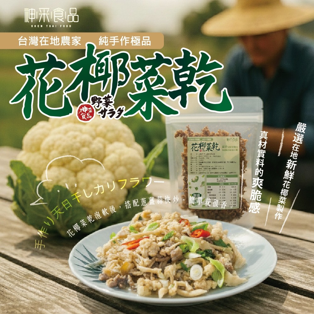 🌿 嚴選新鮮花椰菜,經過鹽漬手工日曬,不添加任何防腐劑,有別於市售機器烘製菜乾,更多了一股迷人日曬香氣,令人懷念的古早好滋味!