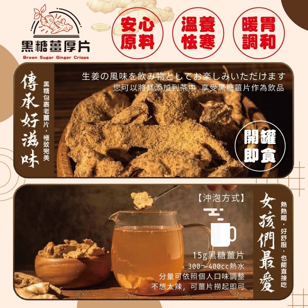 濃香黑糖 × 辛香生薑 × 女生的幸福聖品 🔥 大塊厚切 → 真纖維嚼感 咬下去滿滿生薑纖維,黑糖甜香緊緊包裹, 甜中帶辣,香氣越嚼越濃郁,越吃越上癮! 👧 女生最懂的暖心小零嘴 💖 愛自己的女生必囤 💖 男孩快買來送心上人 ✅ 黑糖 × 生薑黃金比例,甜辣交織,回味無窮 ✅ 泡茶、追劇、下酒都超搭 → 情境百搭零食 ✅ 罐裝設計 → 保鮮便利、送禮體面 ✅ 女生包包必備 → 隨手一片,甜蜜又暖心 ✅ 秋冬首選 → 家人、同事都愛分著吃 📢📢 團媽喊話🔥🔥女性聖品💃手腳容易冰冷的人快買起來,晚一步搶不到! 重量:100公克±5% 保存期限:12個月 產地:台灣 保存方式:請存放於通風陰涼處,請勿置於高溫、潮濕、日光直射之場所。開封後,請置於冷藏保存。