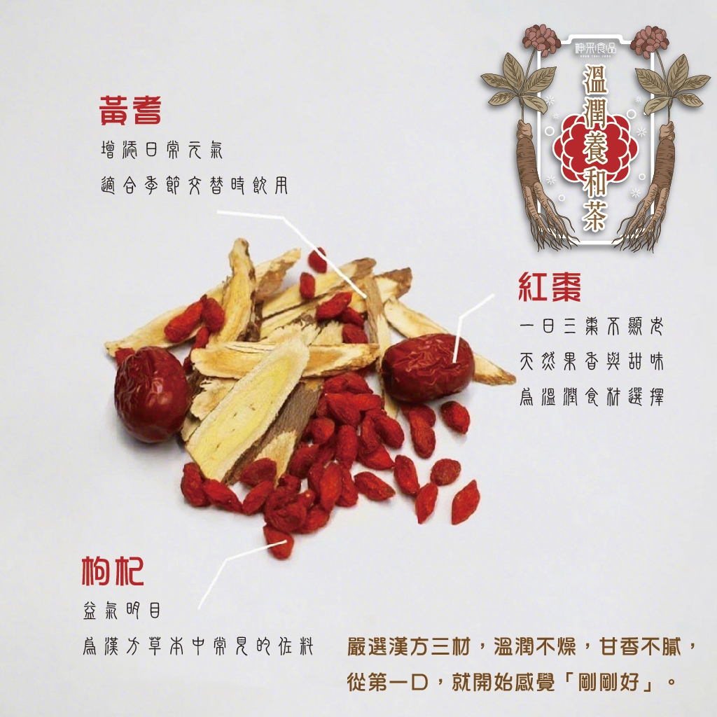 ✅ 嚴選三材:紅棗補氣、枸杞養眼、黃耆提神