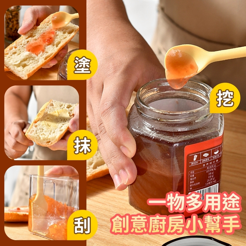 🌸【木棉花】瓶底刮乾淨・食品級矽膠果醬抹刀2入 🍯瓶底的果醬/抹醬/蜂蜜,再也不用浪費啦~ ✔️ 湯匙+刮刀二合一設計|可挖可抹,一支抵兩支 ✔️ 貼合瓶身弧形|果醬、抹醬、優格輕鬆刮乾淨 ✔️ 食品級矽膠|安全無毒、耐高溫、不變形 ✔️ 不黏表面|抹完不沾手,清洗也超簡單 ✔️ 家常手柄設計|好握好操作,使用手感佳 📌 適用:果醬、花生醬、奶油抹醬、優格、蜂蜜、料理調醬 📌 也可當烘焙用刮刀,適合做甜點、調醬料等日常廚房用途 🍽每一口果醬都不浪費! ✨高顏值實用廚房小工具,媽媽們團購最愛💯 【商品規格】 材質:矽膠 尺寸:26x2.8cm 規格:2入 顏色:隨機出貨 產地:PRC(台灣監製)