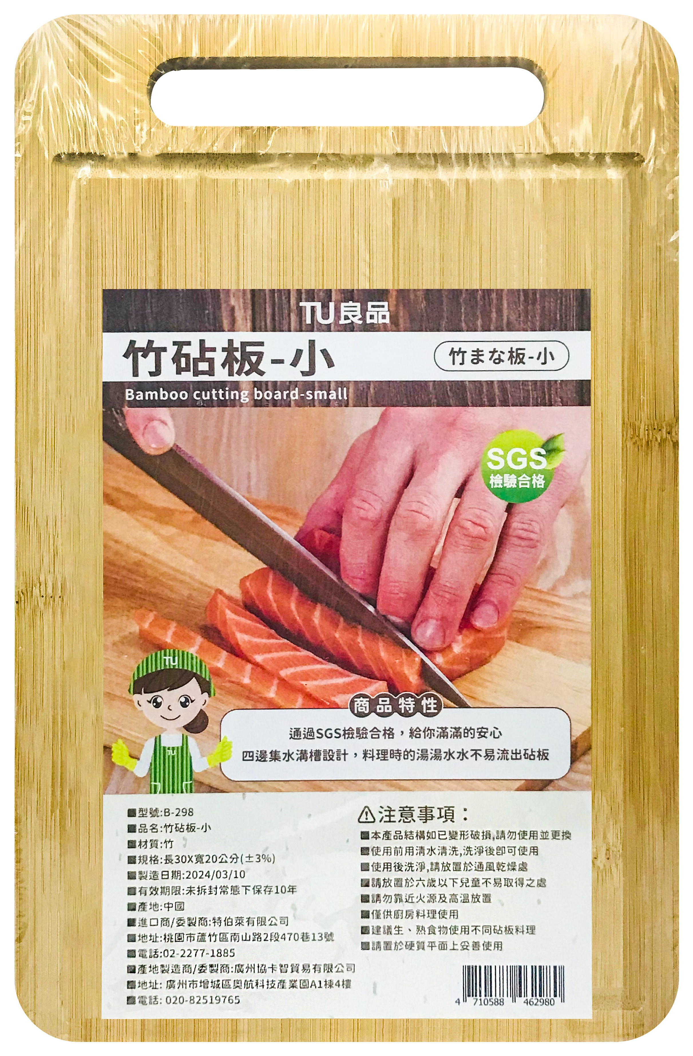 通過SGS檢驗合格,給你滿滿的安心食 四邊集水溝槽設計,料理時的湯湯水水不易流出砧板 材質:竹 規格:30x20cm(±3%) 產地:中國
