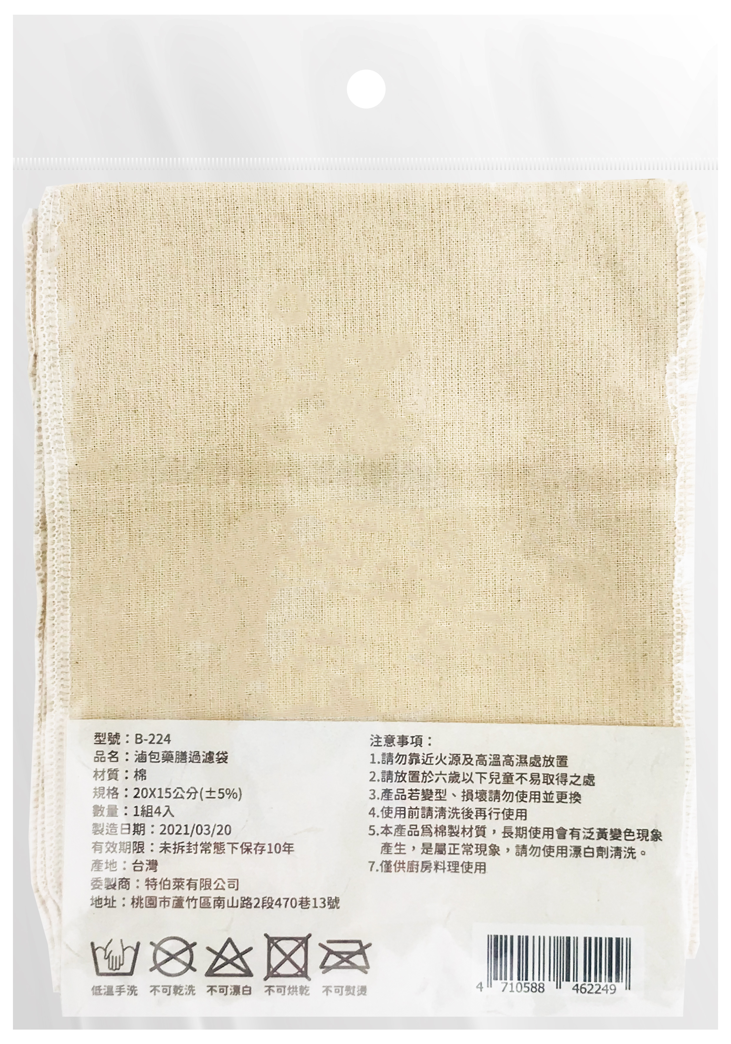 無漂白 無螢光劑 重複使用 附贈綁繩 【商品資訊】 材質:棉 規格:20x15cm 數量:1組4入 產地:台灣