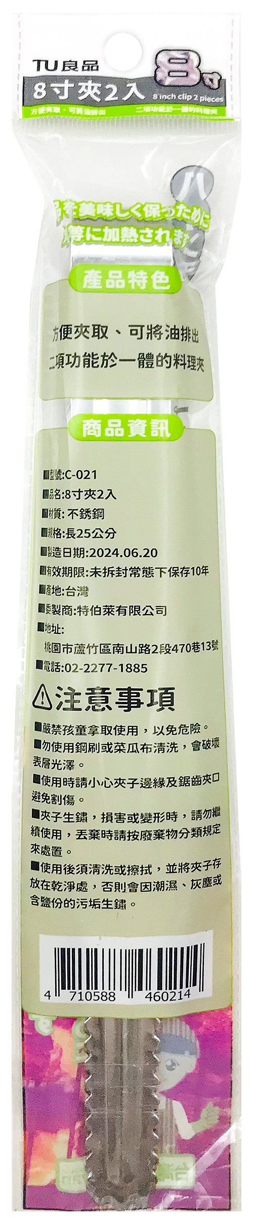 方便夾取、可將油排出 二項功能於一體的料理夾 【商品資訊】 材質:不銹鋼 尺寸:長25cm 規格:2入 產地:台灣