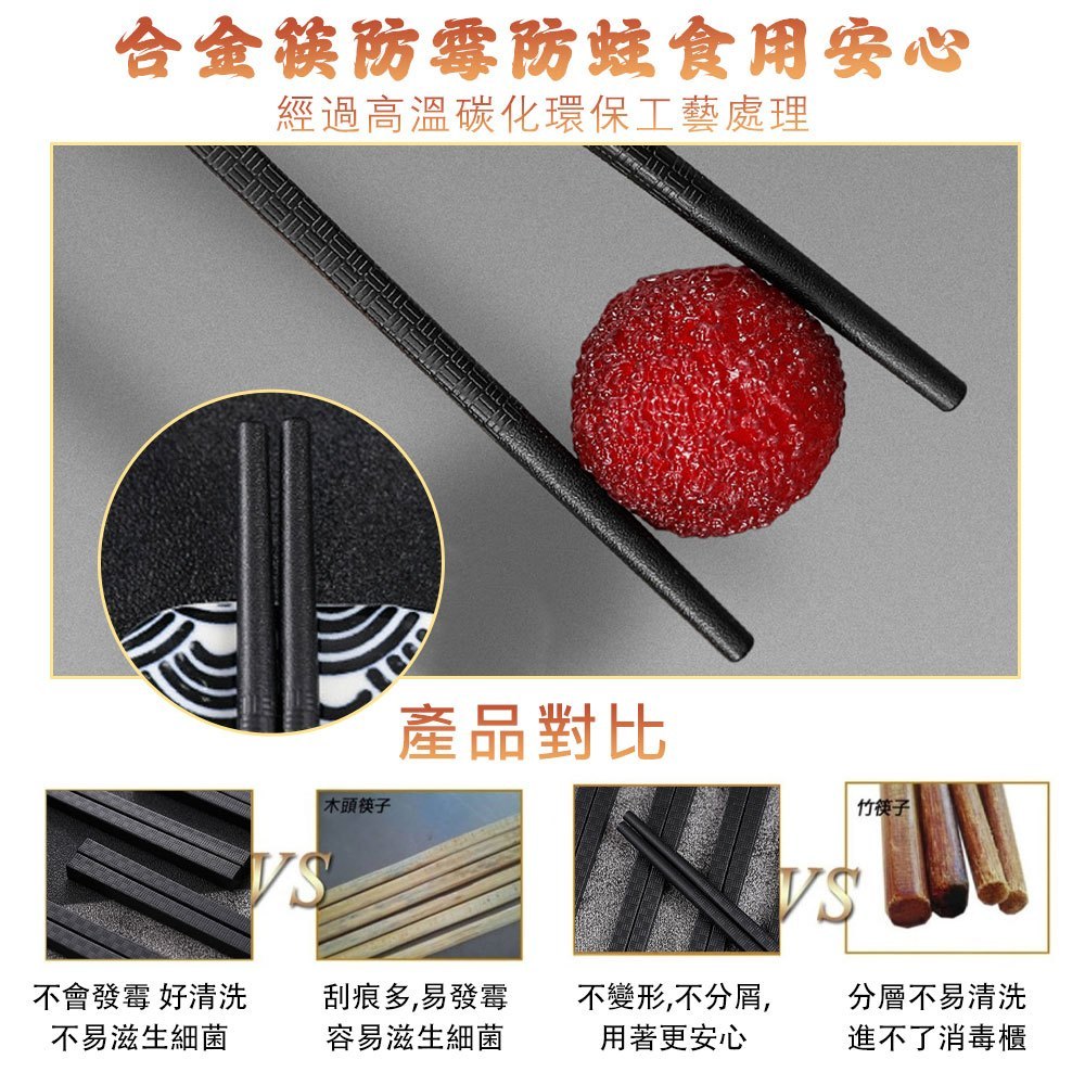 簡約上品 質感外銷日本防滑防燙合金筷 (10雙)