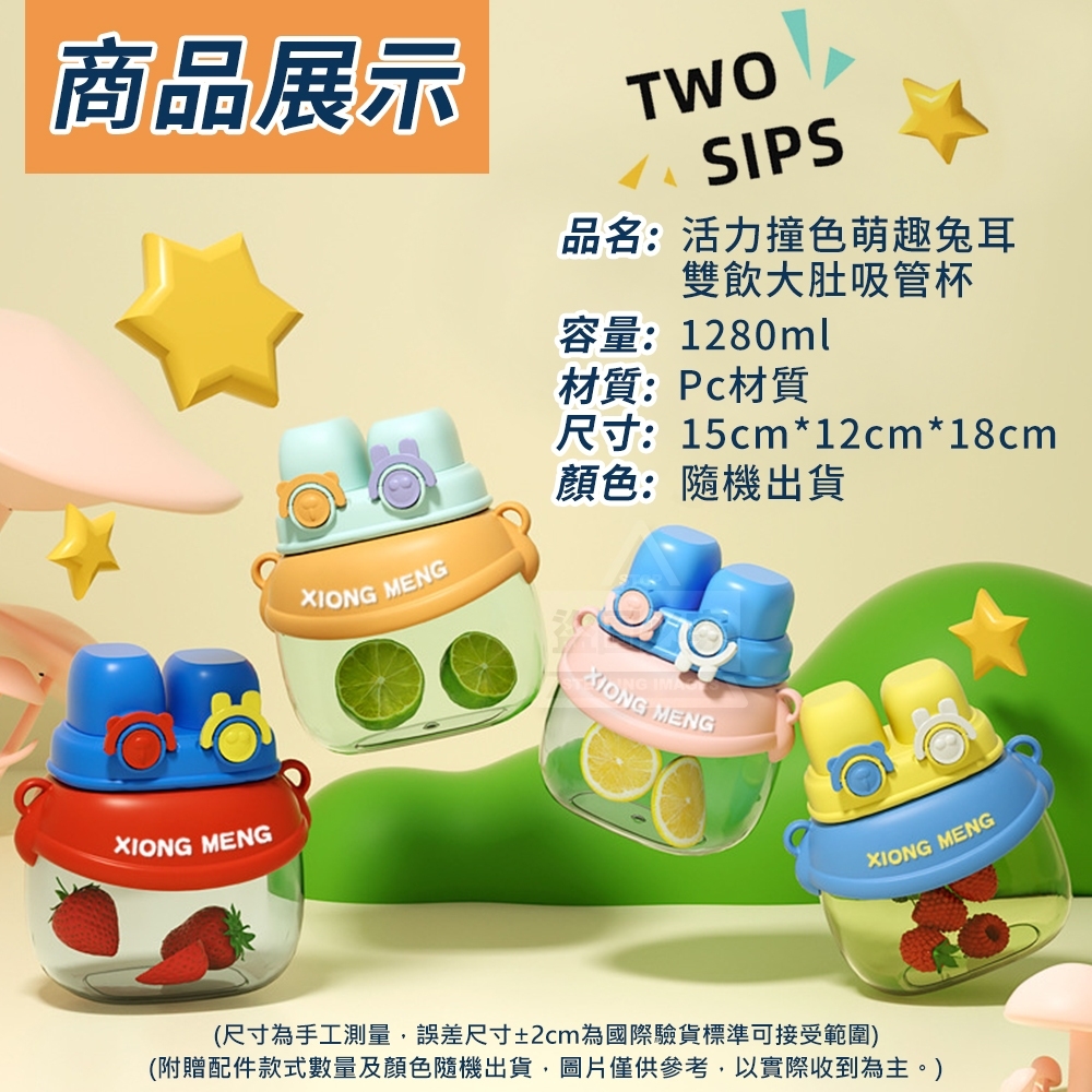 活力撞色萌趣兔耳雙飲大肚吸管杯1280ML