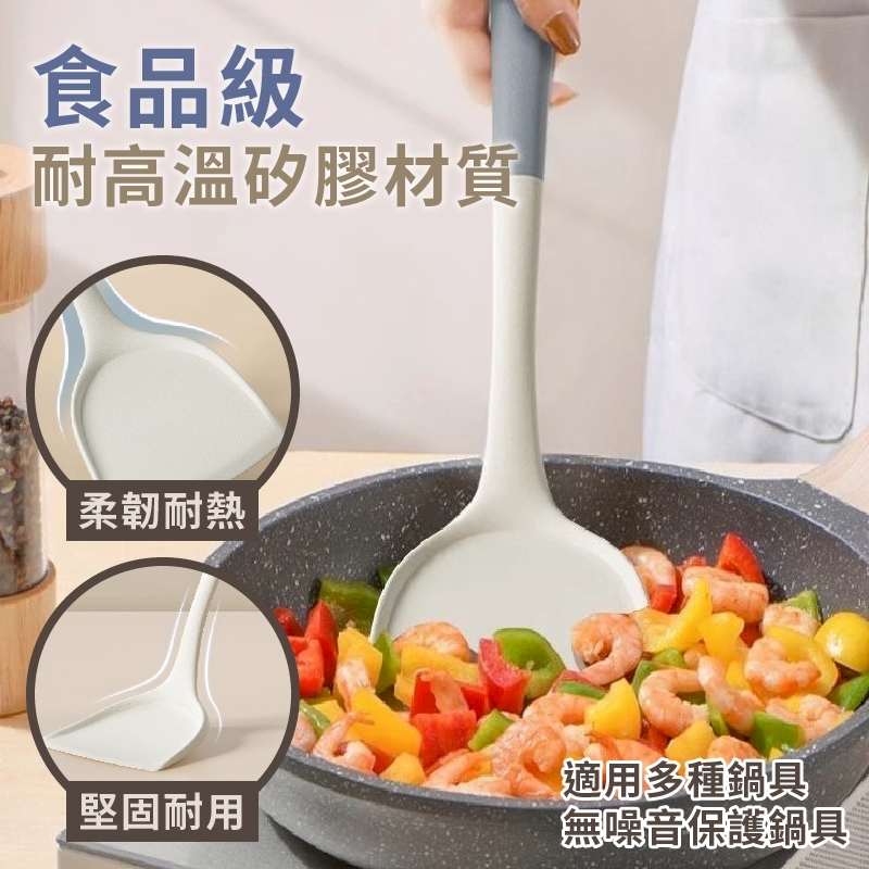 翻炒不卡鍋,柔軟矽膠不刮鍋底,適合不沾鍋。