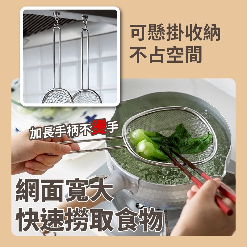 🔹粗網:適合撈炸物、蔬菜、餃子
