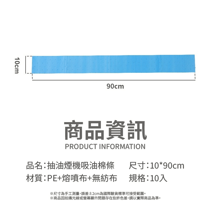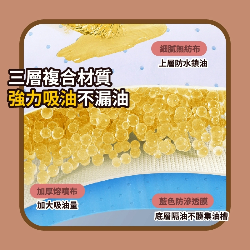 🌸【木棉花】排油煙機吸油棉條10入 主婦救星!告別油膩膩的廚房噩夢!🤢 每次清抽油煙機油槽都清到懷疑人生? 錯!現在開始,你不用再忍受黏膩噁心的油污了! 有了它,清潔變成用完即丟的享受! 🚀 高效吸油,容油量大:採用多層複合材質與獨特壓點設計 吸油效果極佳,能快速、大量地吸附油污,讓接油槽保持乾淨。 🛡️ 藍膜防滲透設計:底層帶有防滲透藍膜 強力隔離油污,保證吸油後不漏油、不滲油,油槽從此不需清洗! ✂️ 任意裁剪,適用所有機型:不論你家是哪種廠牌的抽油煙機 這款棉條都能隨心所欲地剪裁尺寸,完美貼合各式油槽! 👍 拋棄式設計,輕鬆清潔:用髒了就直接丟棄 免洗、免刮、免刷!更換省時又省力,讓你把時間省下來享受美食! 🔥 阻燃材質,使用更安心:採用加厚防火熔質 遇火不自燃,安全升級,讓你在廚房使用更放心。 📢趕快將廚房清潔升級到最高境界! 【★商品規格】 材質:PE+熔噴布+無紡布 規格:90cm*10cm(10入)