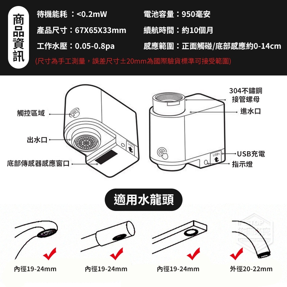 智能感應防濺水龍頭節水器😎感應出水免觸碰 不再困擾雙手洗淨後💦關水龍頭又讓手髒了 便利感應節水器,讓孩子👧👦也能輕鬆洗手 出水柔和防噴濺,不怕水流大會噴濕衣服😌 ☑洗手☑洗菜☑接水隨心使用,滿足多種需求 【材質】ABS 【規格】USB充電約0.5h