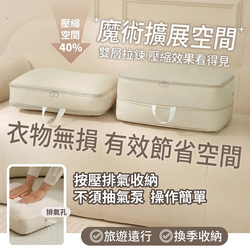 🔥暑假出國/國旅超實用!衣物、毛巾、冷氣毯輕鬆裝 雙層拉鍊壓縮,讓你行李箱再也不爆炸! ✅免抽氣設計|直接按壓排氣,收納0技巧 ✅雙層拉鍊結構|穩穩鎖氣壓縮不回彈 ✅布料厚實有型|不是塑膠袋,質感升級更耐用 ✅兩種尺寸選擇|中款放上衣、薄外套;大款裝浴巾、毯子都OK! 🏕️ 旅行、出差、露營、換季收納全搞定! 📦 省空間又好收納,一袋多用、四季皆宜! 【★商品規格】 產地:PRC(台灣監製) 材質:斜紋牛津布 規格:中號米色40x12x30cm