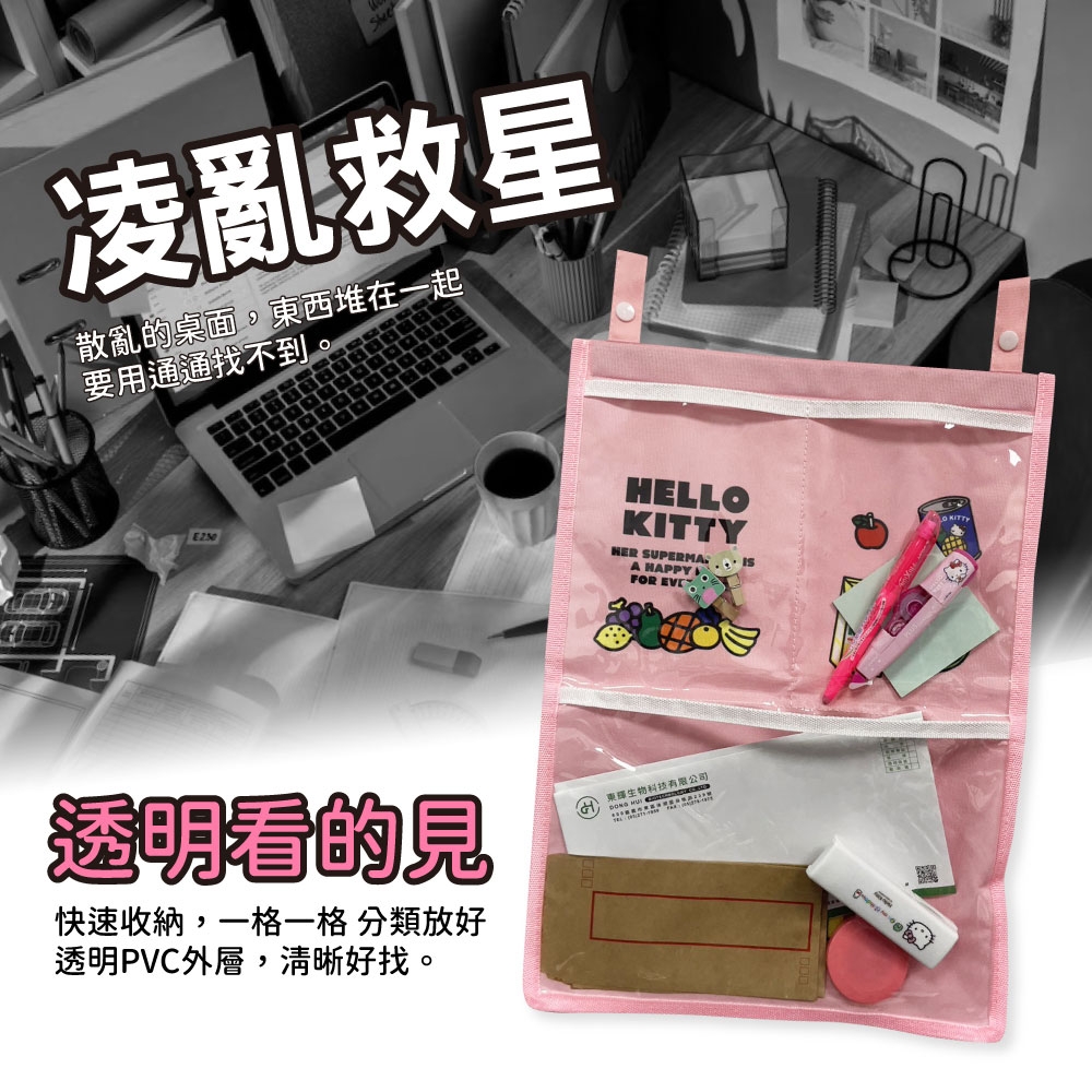 家中各種雜物常常不知怎麼整理….😵💫 就這樣隨手一丟在桌面上、櫃子上💢 導致桌面散亂,要用的時候都找不到😱 解救家中凌亂的救星✨✨ 🎀Hello Kitty🎀懸掛式收納袋 🔍分隔透明收納袋 將桌面不常用到的東西 一格一格分類放好在收納袋裡☑️ 輕鬆還給桌面整潔😆 👀且透明方便又好找 💯大開口隔袋設計 拿東西的時候更好拿取哦!🙌🏻 🌟透明PVC外層 不只清晰好找,還防塵、耐髒污超好清潔💦 💟織帶包邊,細緻中工、不刮手 壓釦提耳設計👉🏻隨處吊掛 ✔️可直接吊掛 ✔️掛在衣架上 ✔️搭配棍類掛起來 ✔️掛在掛勾上 吊掛在牆面上更不佔地方 💕多種吊掛方式隨你運用 🔷門上 🔶辦公室 🔷白板上 🔶車椅座 🔷櫥櫃上等地方 搭配上面運用方式不怕沒地方放😘 正版授權❣ Hello Kitty圖案❣ 🍎圖案可愛 🍎精美印刷 🍎色彩飽滿 粉嫩可愛掛在家中收納超好看的~😍😍 【材質】PVC、牛津布 【尺寸】約42x30cm 【用途】物品分類放置 【使用方法】將收納袋掛於牆上,即可放置物品 【注意事項】請遠離火源