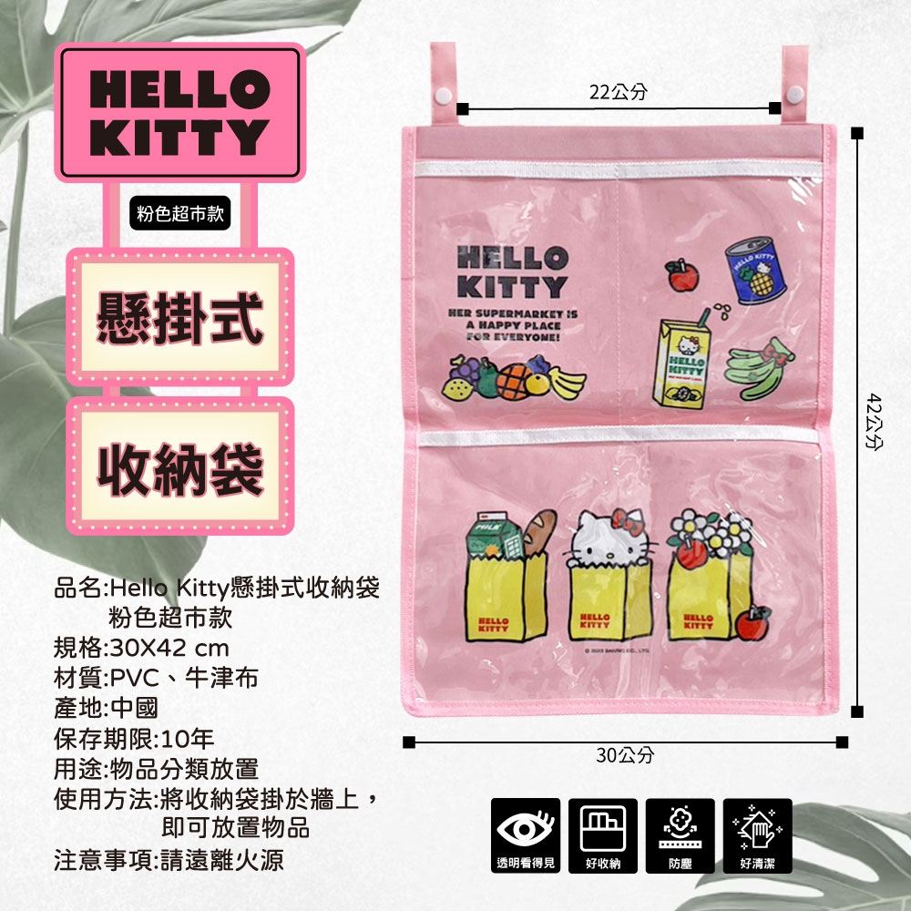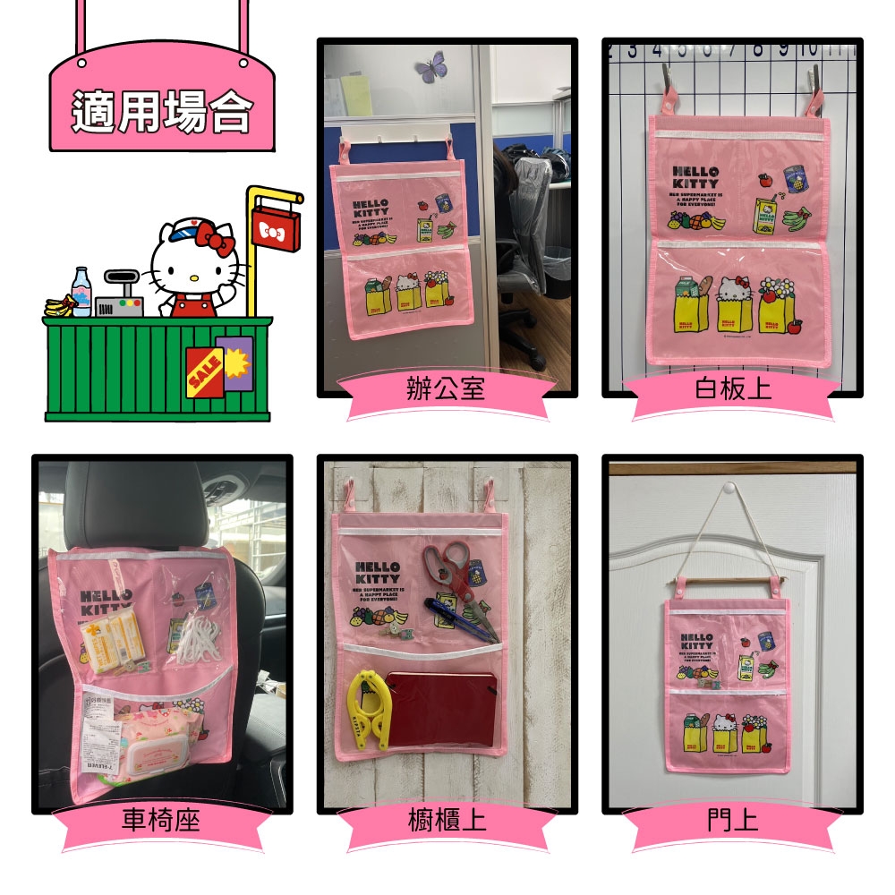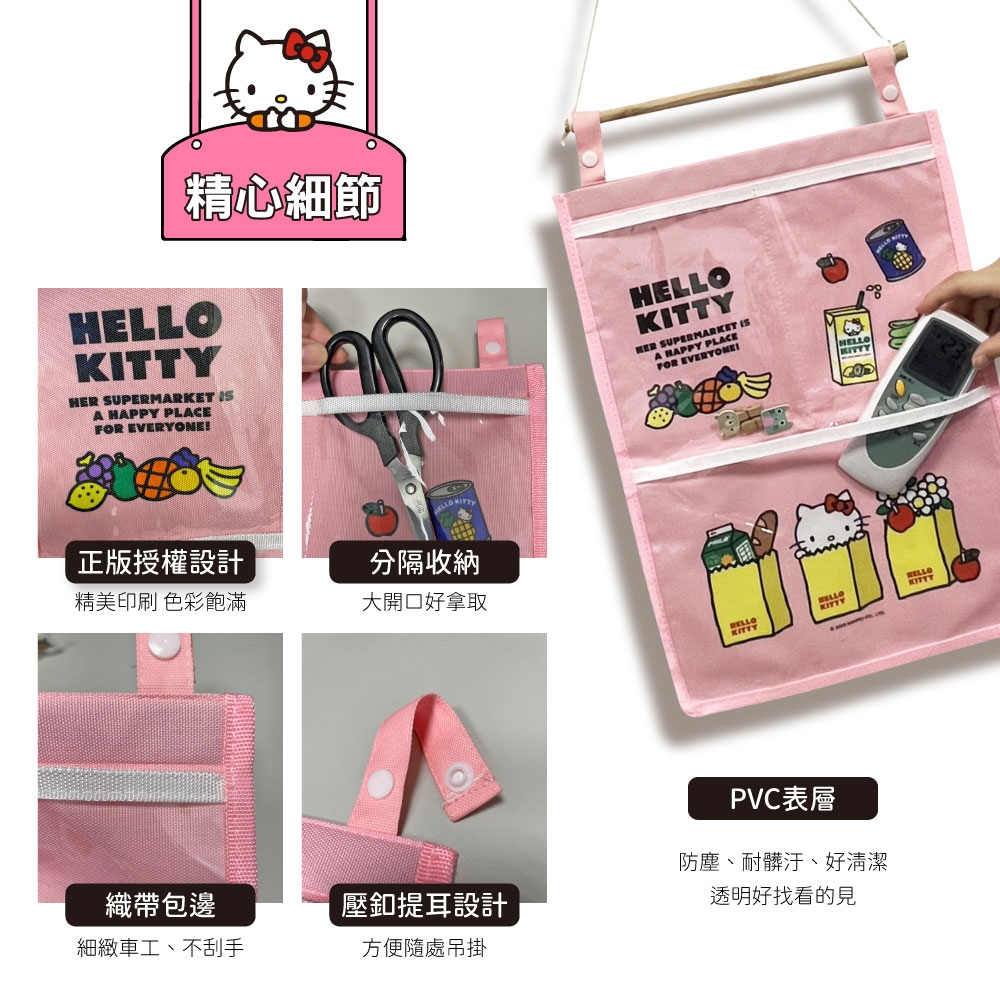 Hello Kitty懸掛式收納袋-粉色超市款