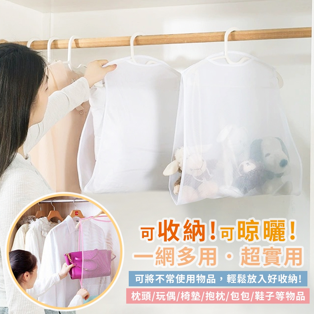 多用途吊掛式透氣曬枕頭網袋(3入)
