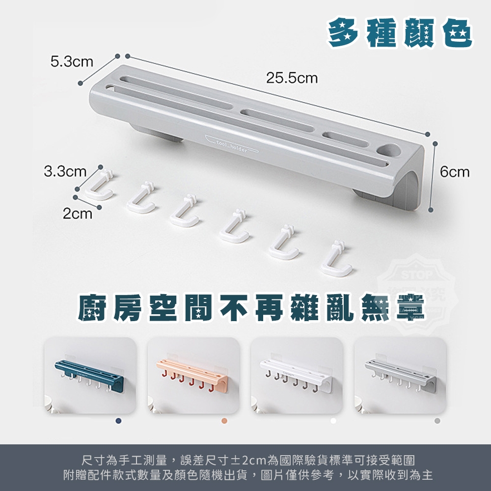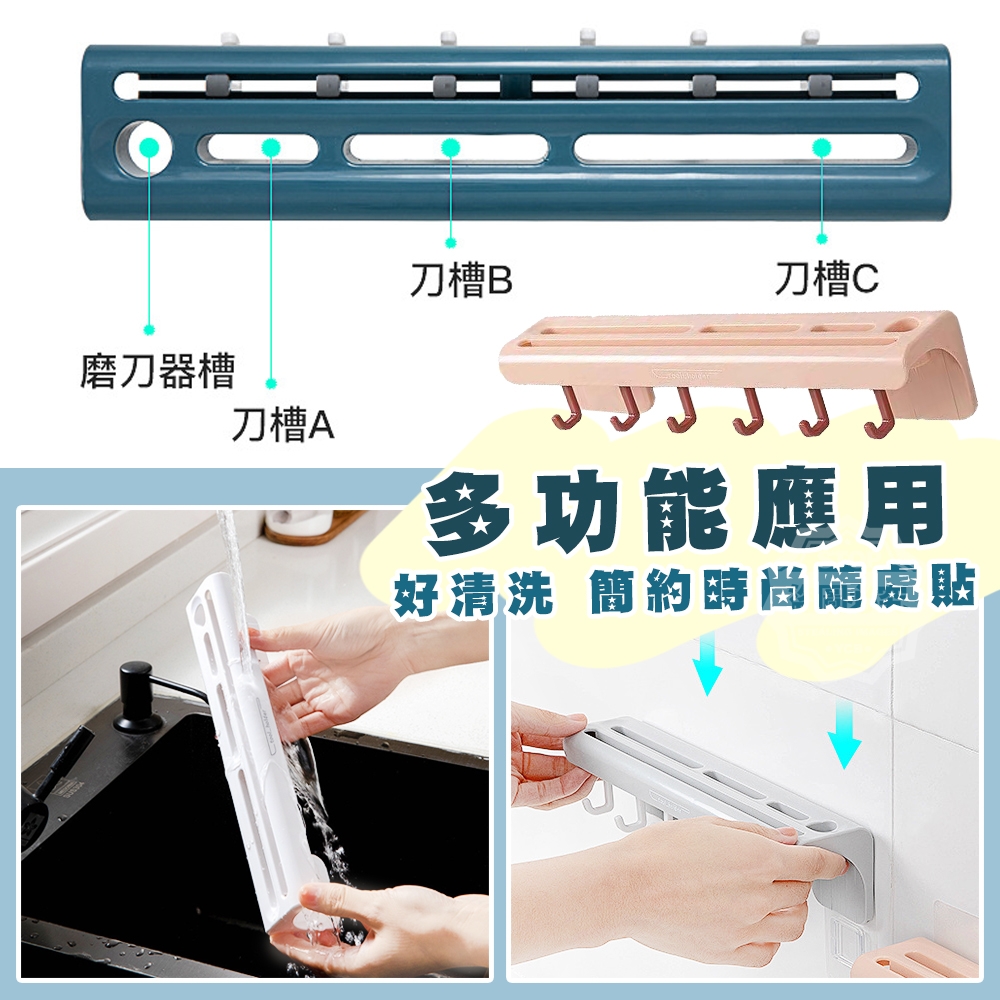 擁有一個巧妙的收納架~~ 可以讓你的廚房更加美觀,讓烹飪變得更加輕鬆愉快 告別凌亂檯面,不僅具有基本的刀具收納功能 可以巧妙地擺放各種大小的刀具,讓廚房空間充分發揮,不再有雜亂感 👉🏻多格收納,分類明確: 可以根據刀具的種類和大小合理分類,使刀具井然有序,輕鬆找到需要的工具 ✅刀槽 ✅掛鈎 垂直收納 圓潤邊角 使用更安心,隨拿隨用輕鬆瀝水,置物掛勾 可移動超實用 造型注重美感,擁有一種簡約時尚的風格,好搭配各種裝潢空間 好清洗 隨處貼,多功能應用,滿足不同需求 讓你的廚房空間不再雜亂無章,而是一個充滿活力和創意的烹飪樂園!! 【尺寸】約25.5X6X5.3CM 、小鉤子約3.3X2CM 【顏色】多種顏色,隨機出貨,不挑款 【商品配置】刀具架、掛鉤*6、背膠 【材質】塑料 【商品包裝】盒裝