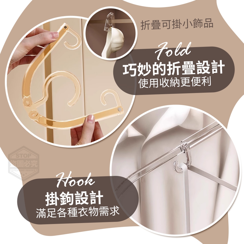 讓生活更輕鬆,衣物更整潔,透彩多用途折疊衣物晾曬架 為您的居家空間增添了便利和美觀!👚🌞🌈 多功能設計,可根據您的需求和空間來靈活調整,滿足不同的使用場景🔄🏠 當不使用時可以輕鬆折疊收納 不佔用多餘空間,讓您的居家空間更加整潔有秩序感📦🧹 采用高質量的材料製造,結構穩固耐用 能夠承受衣物的重量,保證長期使用不變形不腐蝕💪🔧 簡潔的設計風格,與各種居家裝飾風格相容 為您的家居空間增添了一抹清新的美感🏡🌿 不再為晾曬空間而煩惱,讓您的衣物乾爽整潔 居家生活更加輕鬆愜意,享受晾曬的便利和美好!👚🌞🌟 💪掛鉤設計 - 滿足各種衣物需求 💪巧妙的折疊設計 - 折疊後可掛小飾品,使用收納更便利 💪仿肩防滑設計 - 晾曬不鼓包 護肩不留痕 【尺寸】展開約25.5cm*19.2cm、折疊約12.4*8.3cm 【顏色】多種顏色 【材質】PET 【商品包裝】OPP