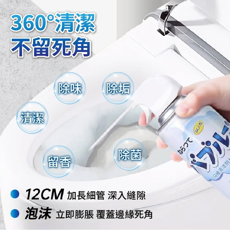 👉 倒噴也OK|360°綿密泡沫|高效抑菌除臭 🧽 一瓶多效合一: ✔️ 濃密泡沫完整覆蓋,不留死角 ✔️ 強力清潔 × 99%高效除菌 ✔️ 快速分解尿垢、異味殘留 ✔️ 無腐蝕、不刺激,敏感材質也安心 ✔️ 加長12cm細管,深入縫隙全方位清潔 🌿 留香潔淨,還原廁所清新感 🌸 讓你的浴廁隨時像新的一樣 【★商品規格】 產地:PRC 規格:500ml