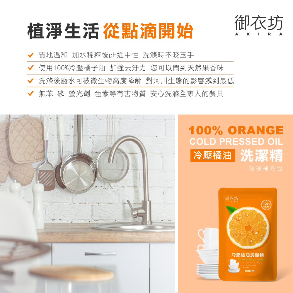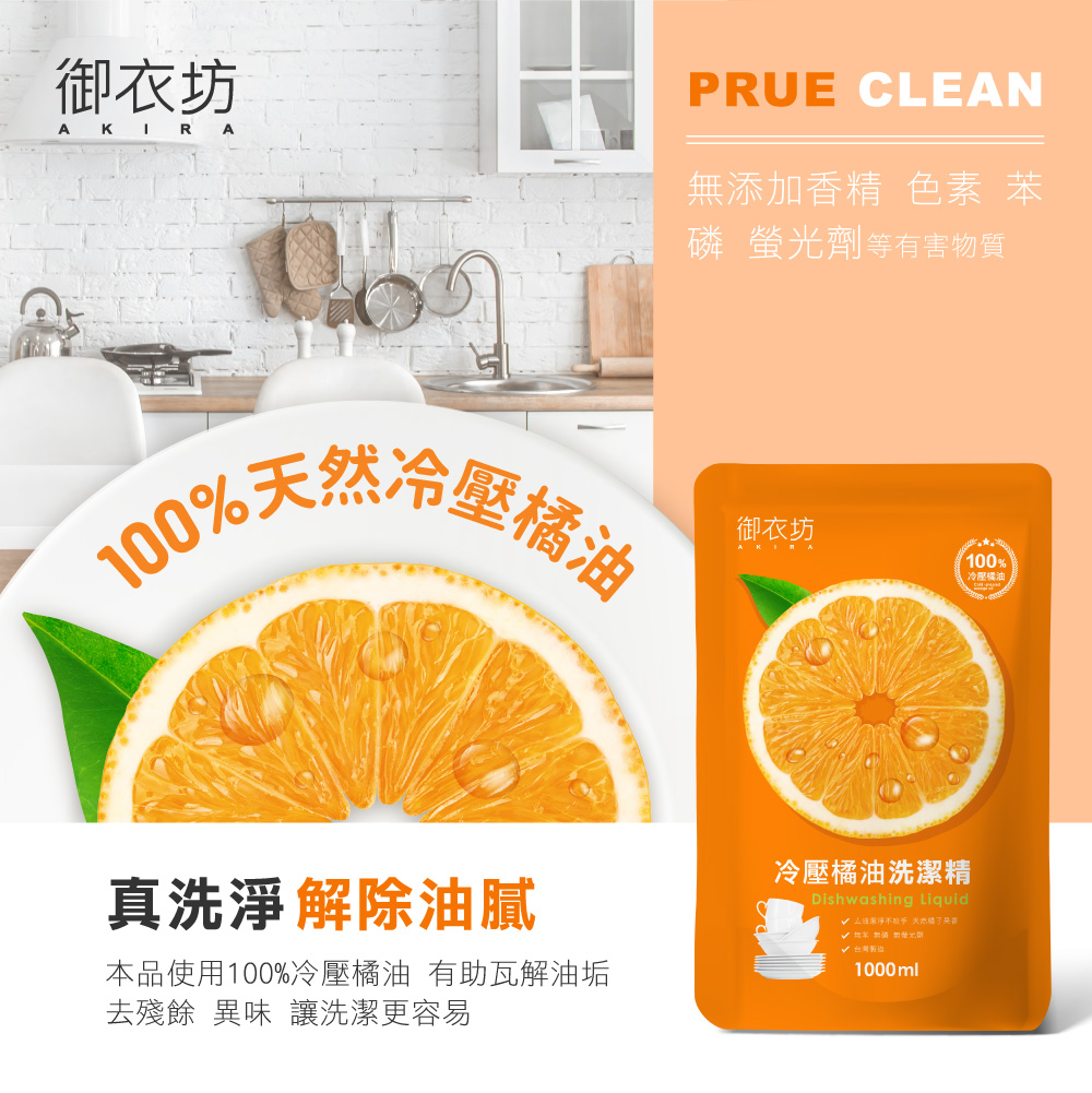 御衣坊 冷壓橘油洗潔精 1000ml(補充包)