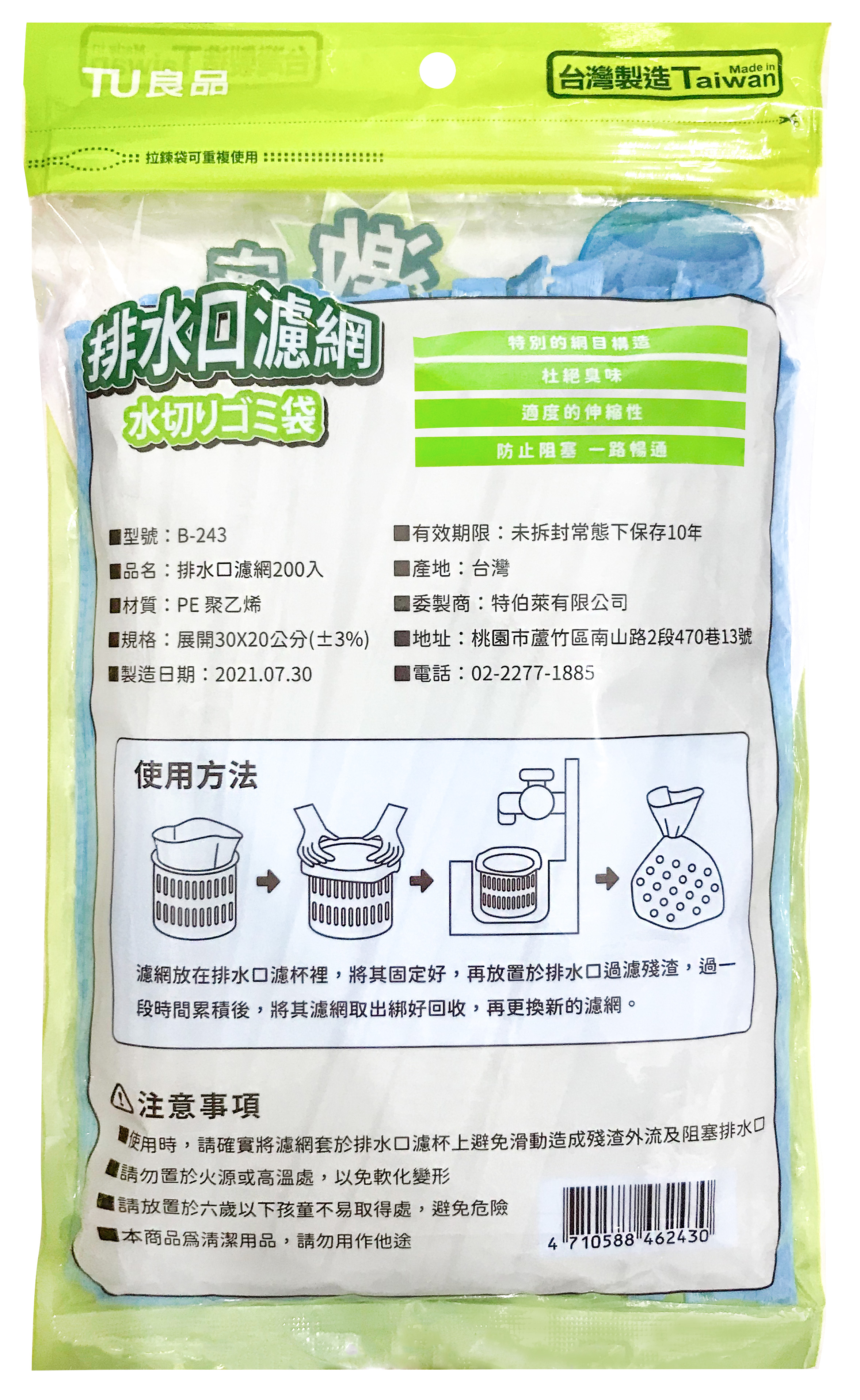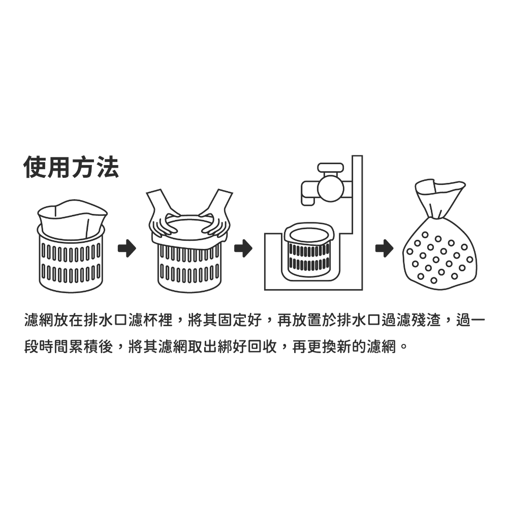 1.媽媽廚房必備的好幫手網孔加密,過濾加倍 2.防止排水口堵塞茶葉渣、果皮、菜渣、拖把毛髮殘渣一把丟 3.杜絕異味,排水管不阻塞 【商品資訊】 材質:PE 聚丙烯 尺寸:展開30x20cm(±3%) 規格:200入 包裝:袋裝 產地:台灣 保存期限:未拆封常態下保存10年