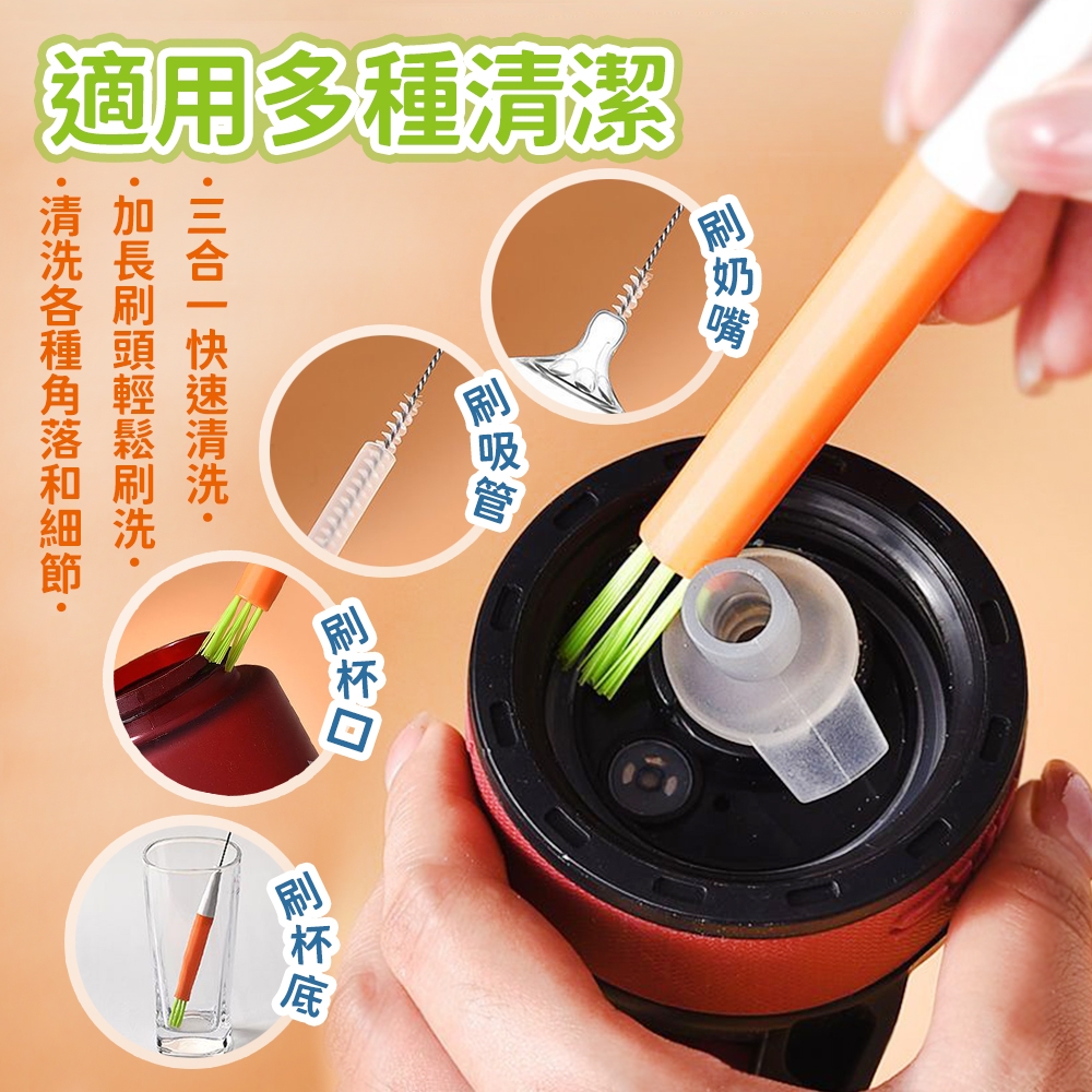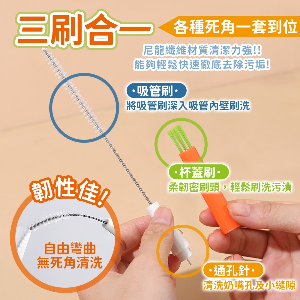 吸管、杯蓋暗藏清不到的髒汙❓ 怎麼清潔都還是有汙垢殘留嗎❓ ✨徹底清潔細節三合一水壺配件刷✨ 三刷合一👌隨意操作 簡單便捷👍 頑固汙漬、死角髒汙,通通輕鬆解決 😎尼龍纖維材質清潔力強,能夠徹底去除污垢 適合清洗各種角落和細節! 吸管刷👉輕鬆深入吸管內壁,可來回或者旋轉刷洗 杯蓋刷👉柔韌密刷頭,輕鬆刷掉細小髒汙 通孔針👉清洗奶嘴孔(及其他細小飲口)及小縫隙 適用多種功能 洗吸管、洗瓶底、洗奶嘴、洗縫隙 各種死角一套到位💖💖💖 【尺寸】約24cm 【材質】ABS+尼龍絲+不鏽鋼 【顏色】多種顏色/隨機出貨 【包裝】袋裝