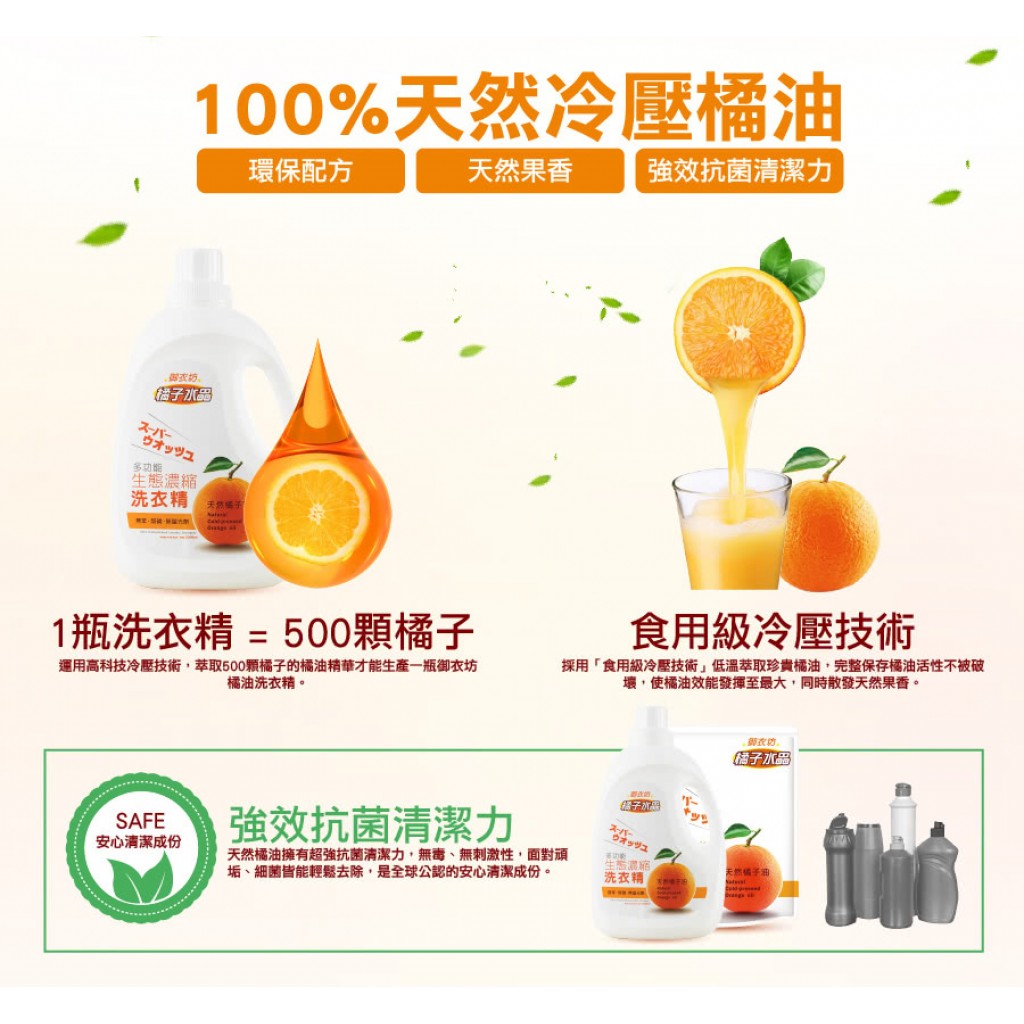御衣坊 多功能生態濃縮 橘油洗衣精(補充包)2000ml
