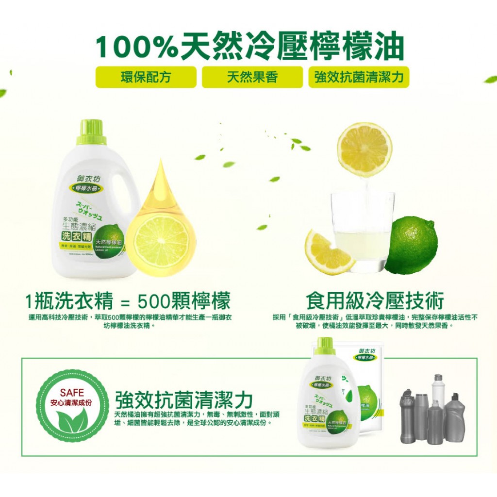 御衣坊 多功能生態濃縮 檸檬油洗衣精(補充包)2000ml
