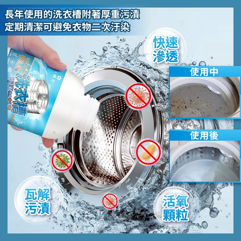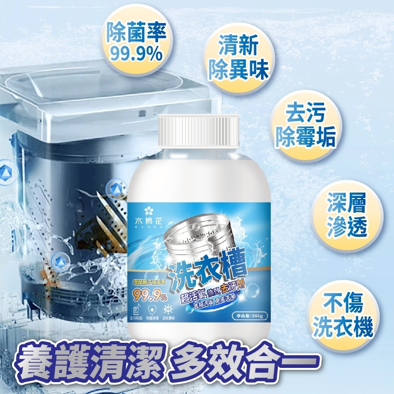 🌀 專為洗衣機而生,洗淨看得見!黴菌除去率高達99.9% 🧺 洗衣槽髒到你看不見?倒入這瓶,髒污直接自己冒出來,洗衣機內部徹底翻新! 👃「衣服洗完還有悶臭味?」 🦠「其實是洗衣槽裡暗藏黴菌與汙垢!」 看不見的地方最髒,別再讓全家的衣服越洗越髒! 🔬【實測證實】黴菌胞子去除率高達 99.9%! 小瓶大功效,洗衣槽清潔你只需要這一瓶! ✅ 小蘇打+過碳酸鈉活氧配方|微氣泡深入清除頑垢與黴菌 ✅ 無需拆機|倒進去泡一泡,髒水自己冒出來 ✅ 除異味+除菌|洗後無臭味,衣物更清新 ✨ 活氧強效清潔|滲透槽內隙縫,深層洗淨 ✨ 安全除菌除臭|有效去除異味、黴菌、黏垢 ✨ 溫水效果更強|建議搭配40°C~50°C溫水使用 📌【建議用量】 直立式洗衣機(10kg以下)👉 使用約1/2瓶(175g) 滾筒式或大容量機種 👉整瓶使用(350g)效果最佳 💥每月一次清潔,持續維持洗衣機健康狀態 ✅ 🌀 適用機型全包: ✔ 直立式 ✔ 滾筒式 ✔ 上掀式 ✔ 自動投洗式 🧺 讓看不見的髒變得看得見,洗衣槽乾淨了,衣服才真正乾淨! 給家人最安心的清潔日常,就從這瓶開始。 【★商品規格】 產地:PRC(台灣監製) 淨含量:350g