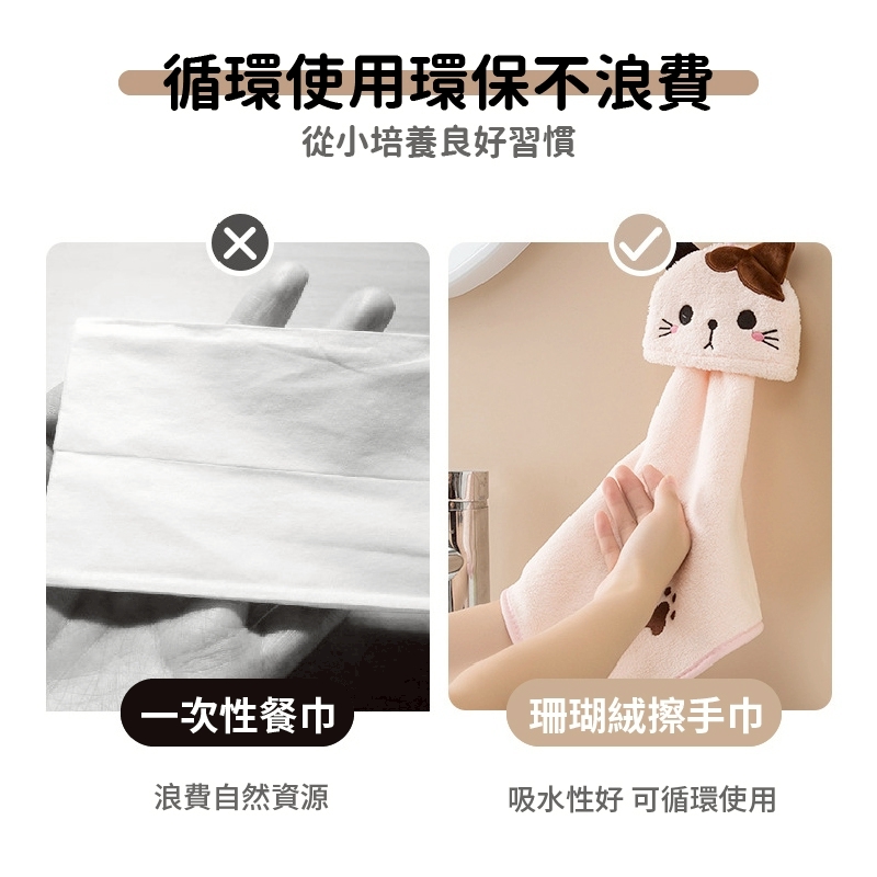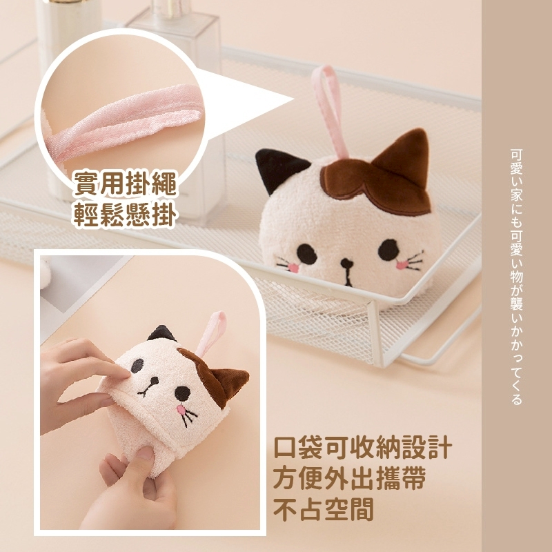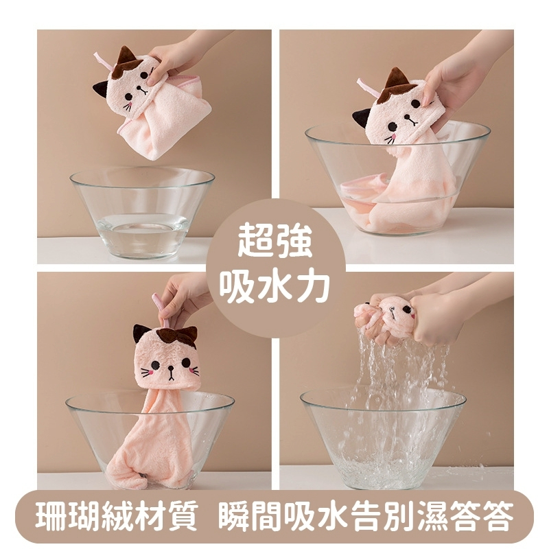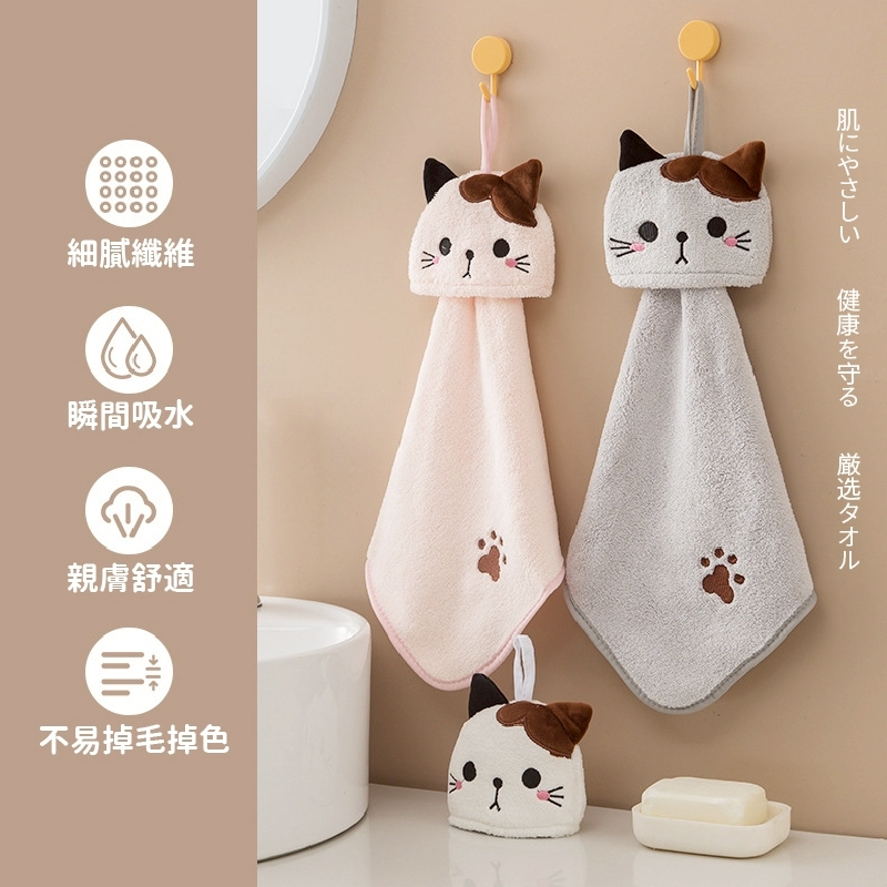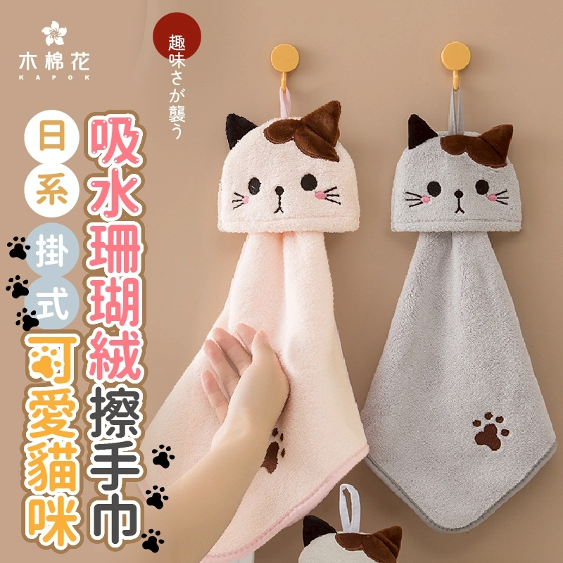 木棉花 日系可愛貓咪掛式吸水珊瑚絨擦手巾