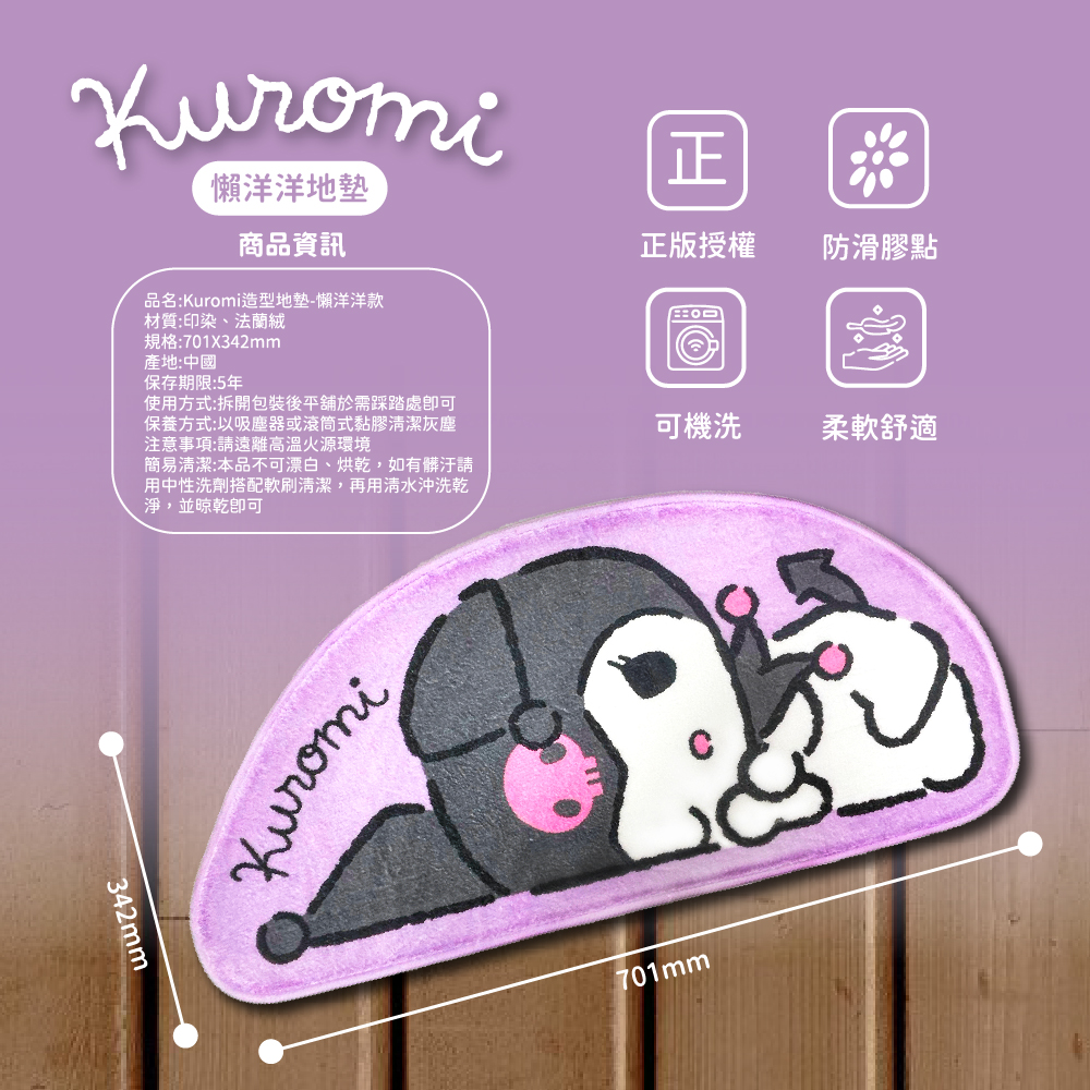 起床下床🛏️進家門時🚪 洗完澡時🛀就要踩踏一下 💜酷洛米Kulomi懶洋洋造型地墊💜 🌈正版授權🌈 💜可愛的懶洋洋酷洛米💜 慵懶的躺在家中角落~ 夢幻紫色帶給你甜蜜氛圍💗 地墊加厚☁️柔軟回彈☁️ 🧦踩踏上去超柔軟超親膚✨ 如同雲朵般舒適哦✨ 🔴🔵底部防滑膠點 放置踩踏防滑💓不易滑倒哦💓 家中有老人、小孩也能安心🥰 可放在臥室🏠客廳🏠鞋櫃🏠 玄關🏠浴室🏠等地方 踩踏二、三下👉把灰塵髒污弄掉 進入室內保持居家乾淨✨ 髒了可機洗💦💦 洗淨清潔超便利👍 【材質】印染、法蘭絨 【規格】約701x342mm 【保養方式】以吸塵器或滾筒式黏膠清潔灰塵 【簡易清潔】本品不可漂白、烘乾,如有髒汙請用中性洗劑搭配軟刷清潔,再用清水沖洗乾淨,並晾乾即可