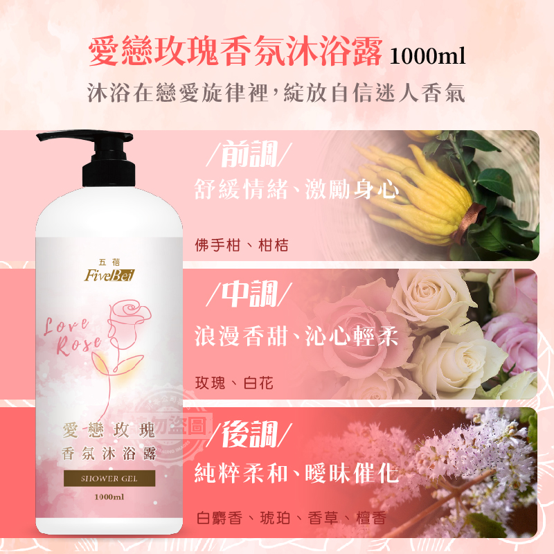 五蓓Five Bei 愛戀玫瑰香氛沐浴露 1000ml