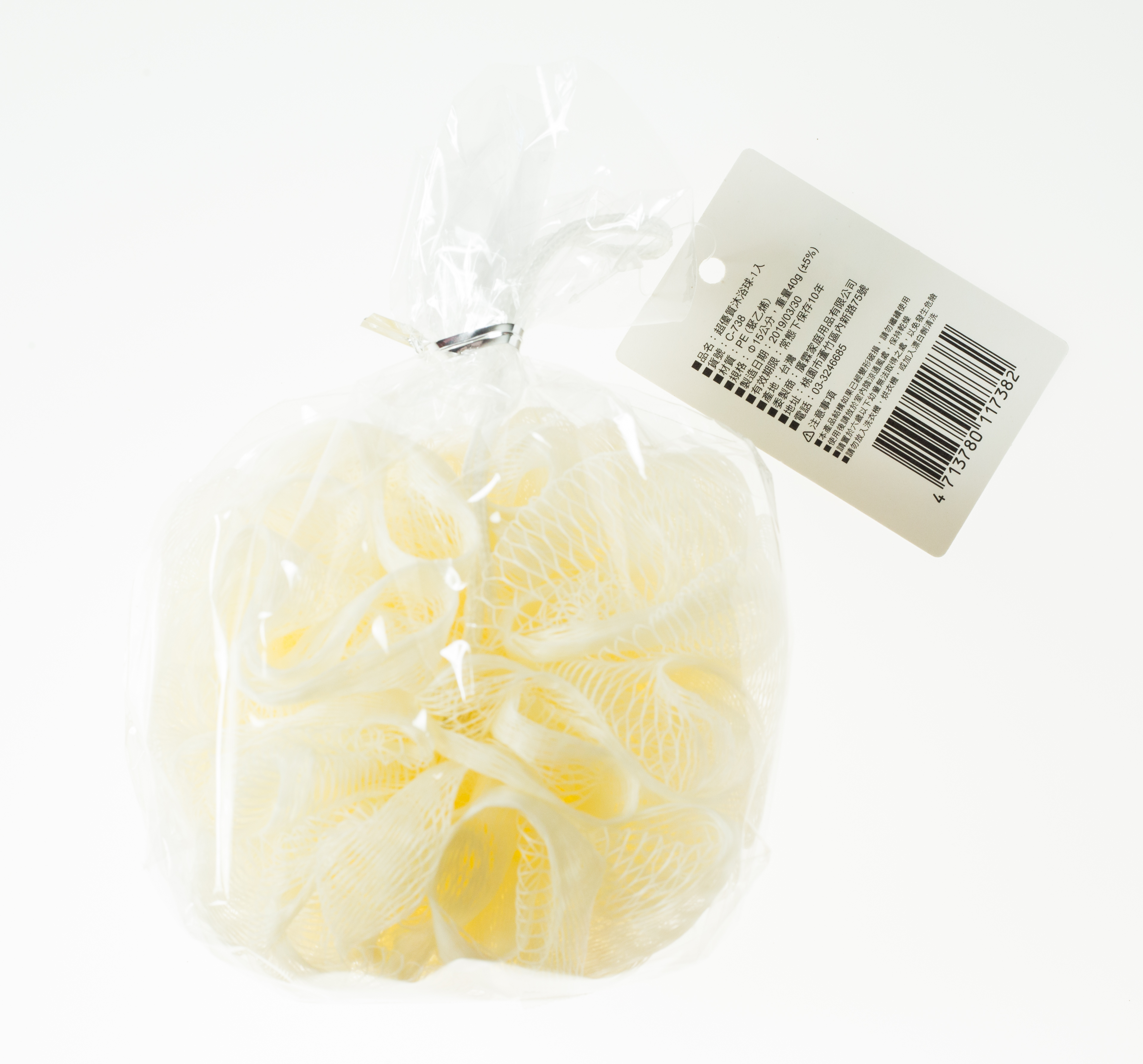 1.台灣製造,環保PE材質 2.親膚性高,柔軟、不傷皮膚 3.多孔網孔 質地細膩 4.起泡量強 沐浴更享受 【商品資訊】 材質:PE(聚乙烯) 尺寸:直徑12cm(±5%) 重量:40g(±5%) 產地:台灣 保存期限:常態下保存10年
