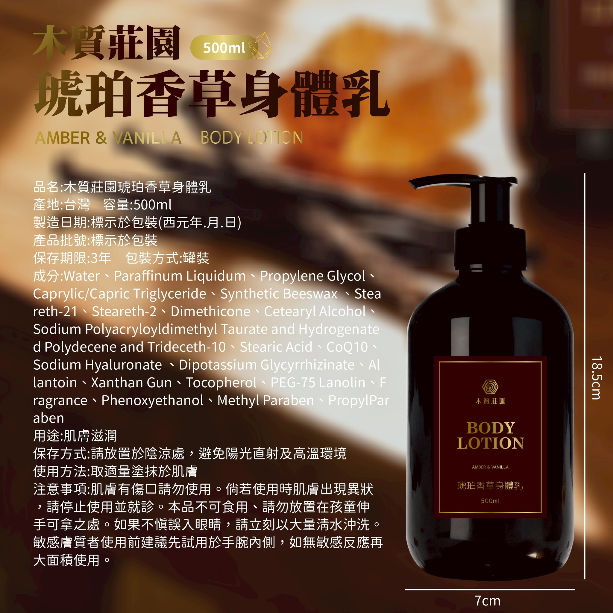 木質莊園 琥珀香草身體乳 500ML