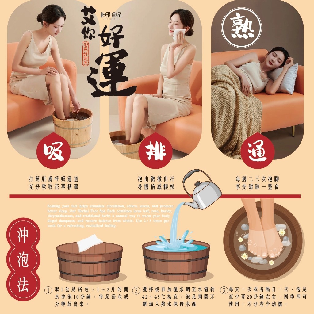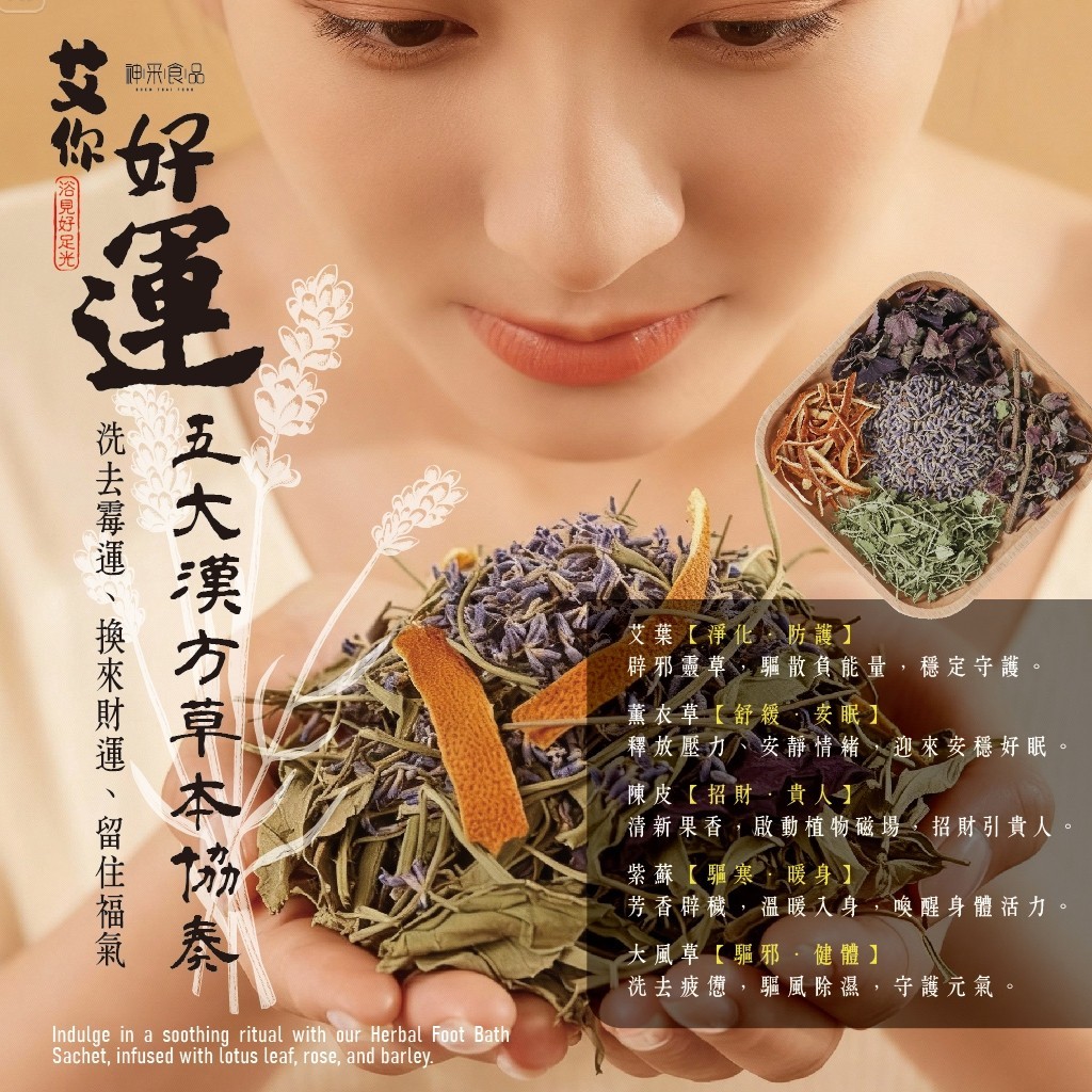 「開運、招財、納福,從溫暖足跡開始。」 洗去一身塵埃,騰出空間盛裝好運。 🪄每天一包,讓你整個人「香香平平安安」 🌿出門當平安符帶著,入夜泡腳轉好運✨ 嚴選成分,一泡就舒緩全身壓力與雜氣 🍊 柑橘陳皮|招財.貴人 清新柑橘果香,啟動豐盛磁場;助事業順行,吸引貴人與財運靠近。 🌿 艾葉|淨化.防護 千年辟邪靈草,深層淨化身心磁場;驅散負能量與干擾,穩定守護。 💜 薰衣草|舒緩.安眠 柔和紫色芬芳,釋放壓力、安撫情緒;讓心靜下來,迎來安穩好眠。 🍃 紫蘇|驅寒.暖身 芳香辟穢,溫暖入身;由內而外驅散寒氣,喚醒身體活力。 🍀 大風草|驅邪.健體 傳統暖身藥草,驅風除濕、洗去疲憊;守護健康,回復元氣。 人人都說泡澡對身體好~料用對了還能得到四季防益的效果 每一滴草本精華,都是大地純粹的守護。 堅持無毒、安心的植萃力量,為您洗淨身心的紛擾。 #泡腳 #沐足 #草本 #手工新鮮配製 #泡澡 【使用方式】 ● 份量|足浴使用1包,泡澡使用2包 ● 水量|水量超過腳踝至小腿肚 ● 溫度|以不傷害皮膚為宜,水溫約40℃ ~ 42℃ ● 時間|浸泡約15 ~ 30分鐘,至身體微微出汗 ● 最佳使用時段|每晚睡前(經期不適者,可在經前一週開始使用) 重量:20g±5% x5入 產地:台灣 保存期限:24個月 保存方式:請存放於通風陰涼處,請勿置於高溫、潮濕、日光直射之場所。