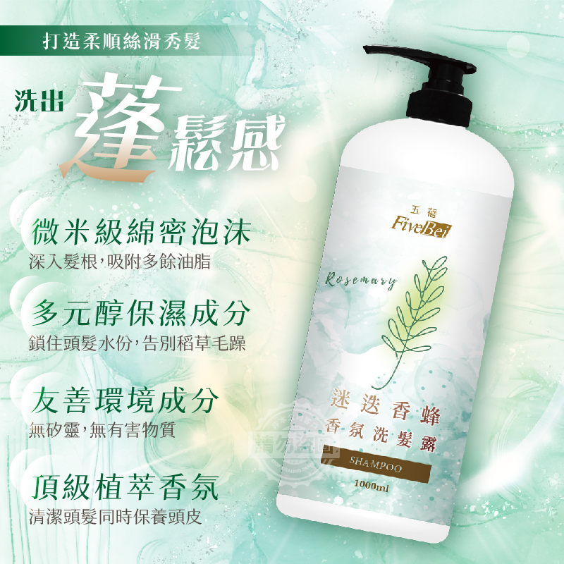 💐今年春夏為洗髮體驗注入奢華與清新🌟 🍀五蓓Five Bei 迷迭香蜂香氛洗髮露1000ml 🍀 力推這瓶沙龍保養等級髮品❗️❗️ 散發華麗芳香、絲絲動人💃🏻 🌿五倍蓬鬆 獨特的蓬鬆配方,讓秀髮展現迷人蓬鬆動感💓 高質感香氣,100%魅力激增💯 賦予蓬鬆髮根,柔順髮尾,頭皮會呼吸😆 🌿五倍奢華 迷迭香蜂草本系療癒香氛,淡雅植萃芬芳🌱 TOP | 柑橘、檸檬香茅、西洋蓍草、薰衣草、薑 MIDDLE | 玫瑰、杏仁、迷迭香、蜜桃 BASE | 香草 🌿五倍享受 宛如SPA頂級體驗🚿 純淨迷迭香,讓洗髮時光昇華為一場自然的愉悅之旅💕 感受清新,追尋自然,讓每根髮絲都散發著自信的美麗光芒🌟 🌿五倍安心 台灣優質MIT製造,全家人使用超放心👨👩👧👦 ❌❌無矽靈、無有害化學物質、無著色劑❌❌ 🌿五倍絲滑 深層滋潤每一根髮絲,修護髮尾💗 💟柔順亮麗,撫平毛躁 告別乾燥分岔頭皮屑⚡️ 洗完髮質不乾澀、不毛躁 🌿五倍潔淨 潔淨因子深入髮芯💦 淨澈頭皮,溫和不刺激😘 💜豐富微米級泡沫融合迷人的香氣 清涼舒緩,洗出乾淨健康好髮質👍🏻👍🏻 🌿五倍柔順 添加柔順成分,溫柔包覆每一絲秀髮✨ 洗後好梳理不糾結 細心呵護你的寶貝頭髮💖 🌿五倍亮澤 含多元醇成配方,幫助頭髮保持水分💧 髮絲不會淪為稻草,頭皮不易變乾燥 🧡充分養分,髮絲快速吸收 恢復光澤彈力,耀眼動人💎💎 🌿五倍輕盈 頭皮倍感清爽舒活⭐️ 不乾塌、不乾澀,空氣感+88%❗❗ 喚醒秀髮生命力,神清氣爽🤩 🌿五倍光彩迷人 讓僵硬毛躁的髮絲重獲新生🌈 香氣長效停留在秀髮,綻放魅力芳芬🌼 隨時隨地有如女神降臨般的水潤光澤感✨✨ 【製造】台灣