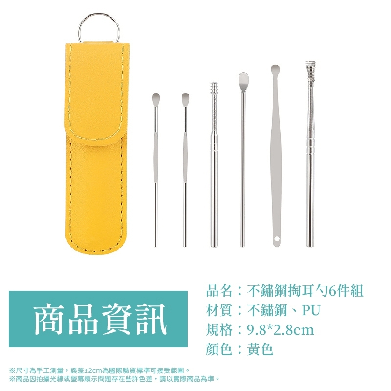 👂 深層清潔 × 舒適按摩,一套全搞定! 🥄 寬柄+弧形耳勺 → 基礎清潔好輕鬆,溫和刮除日常耳垢 🥢 大瓢型耳勺 → 深層硬耳垢剋星,大面積清理更徹底 🌀 三環螺旋耳勺 → 專治濕耳垢 & 頑固耳垢,旋轉刮取不費力 🔄 彈簧按摩耳勺 → 邊清潔邊按摩,輕彈耳道享受 SPA 級舒爽 🧰 皮革收納袋 → 小巧便攜,辦公室、宿舍、旅行隨身帶 💎 6 件組合 → 多功能耳勺,從日常到深層需求一網打盡 💡 全不鏽鋼打造,安全耐用、易清洗、不生鏽 💛 圓潤安全頭設計,護耳不刮傷 📦 適合全家共享,輕鬆保持耳朵清爽健康 🔥 多場景使用: ✔ 居家自用 → 日常快速清潔 ✔ 辦公室 → 午休小護理 ✔ 旅行露營 → 隨身乾淨不將就 👉 一套多用,精準對應不同耳垢狀況,給耳朵全方位呵護! ✨【立即入手 ➜ 耳朵乾淨+舒適按摩,一次滿足】✨ 【★商品規格】 產地:PRC(台灣監製) 材質:不銹鋼、PU 規格:9.8x2.8cm 顔色:黃色