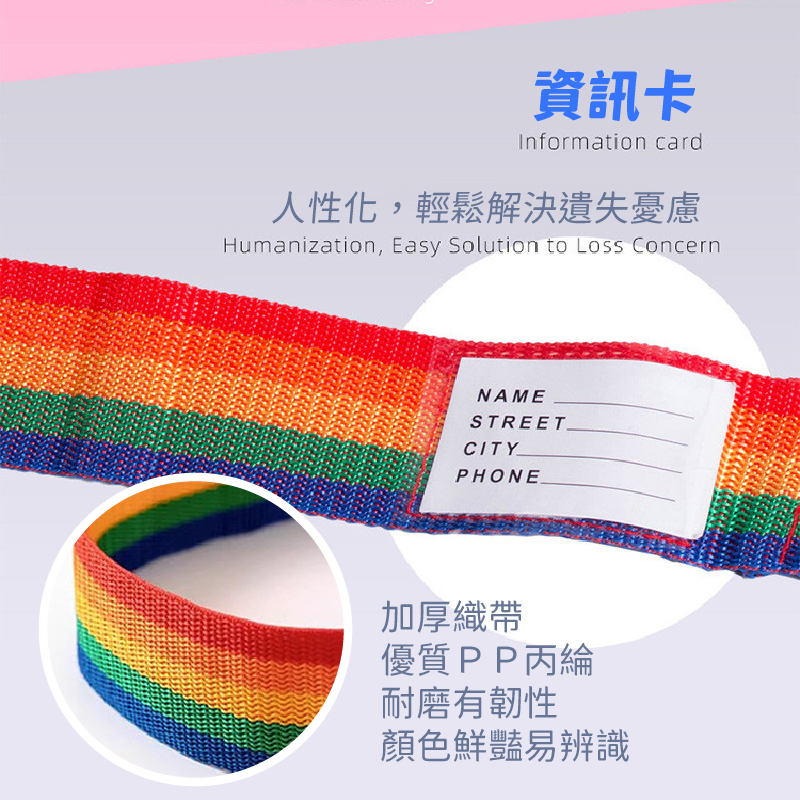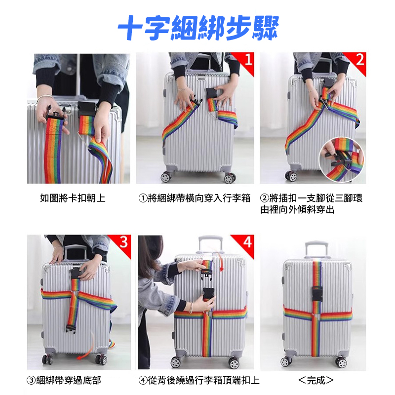 💢一條平行束上是不夠的❌❌ 🔺使用十字束法加固把行李箱綁緊緊,讓行李托運更安心👏👏 ✈出國旅遊真的好好玩😁😁😜 🤡但要玩得盡興可別掃興 😱出國旅遊要帶的東西太多 😣最氣人的就是行李箱永遠差那麼一點點塞不下❌ 硬塞又怕在運送過程中碰撞拉鍊爆開露出了不該露的東西,旅行的興致就破壞了一大半👎 使用最佳幫手😍讓你防爆箱、好識別 👉可以安心、放心、開心的購買戰利品跟名產 不用選擇通通買買買👏👏👏 😏別再擔心行李箱炸開 💥長度可調節,20-34吋行李箱都適用 ✅快速固定 ✅辨識度佳 ✅避免爆開 【★商品規格】 產地:PRC(台灣監製) 規格:5×420 cm 顏色:彩虹色 材質:聚丙烯+炳綸 保存期限:5年