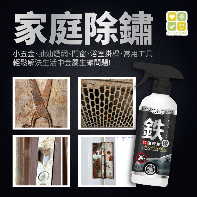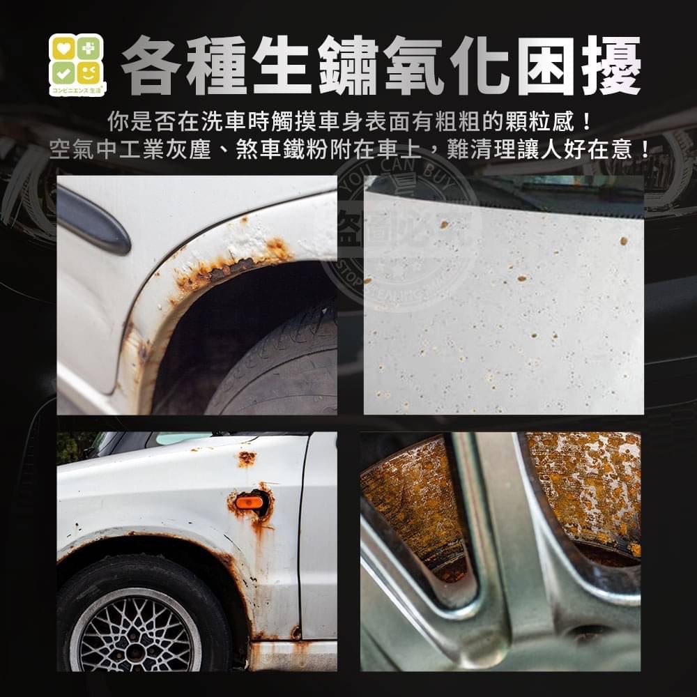 你是否在洗車時觸摸車身,表面有粗粗的顆粒感 空氣中的工業灰塵,煞車鐵粉附在車上 好難清理讓人好在意,送去保養都要花好多錢! 想要省荷包,就交給"日本CLH 30秒即可還原鐵粉拔除劑" ✨強力分解,一噴見效 有效分解汽車漆面的鐵粉、金屬氧化物 清洗後漆面潔淨如新,並形成離子保護膜,有效養護漆面! ✨溫和配方不傷車 鐵粉沉積的重點部位,如輪圈、漆面等都能使用 中性配方不傷車體,讓你使用更安心! ✨用途更廣泛 除了可運用在汽車外,機車也能做使用,也是家庭除鏽幫手! 小五金、抽油煙網、大門鐵窗、浴室掛桿、常用工具 各種金屬生鏽腐蝕處都能做使用,輕鬆解決生活中金屬生鏽問題! ✨使用方法: 將本品充分噴在汽車漆面有鐵粉凝結部位等待幾分鐘, 再用清洗沖洗乾淨,並用乾淨毛巾擦拭乾淨即可。 ✨注意事項: 遠離兒童接觸、遠離火源、避免重壓撞擊。 【容量】約260ml