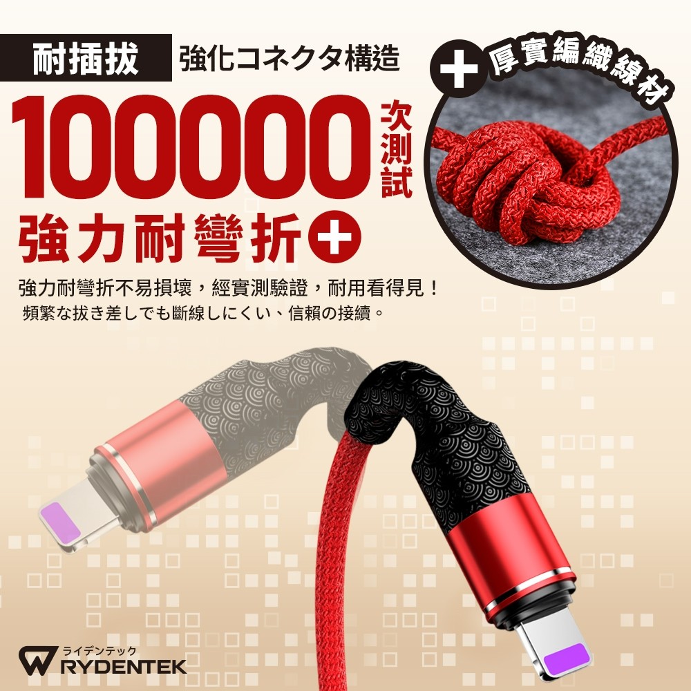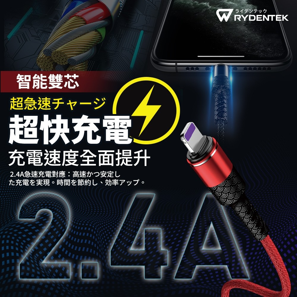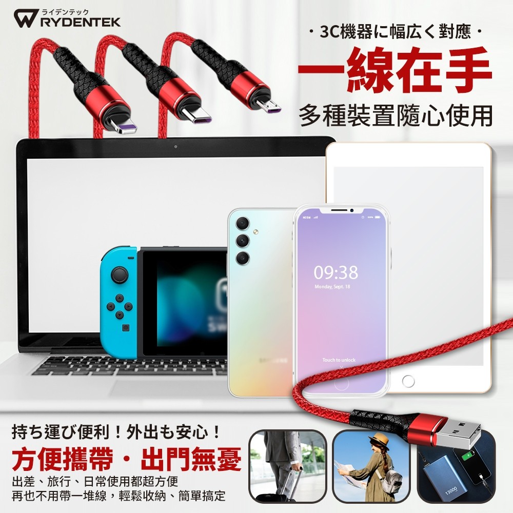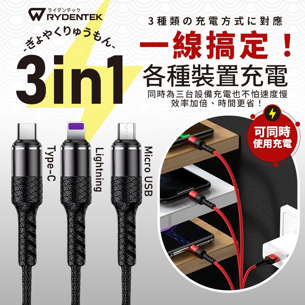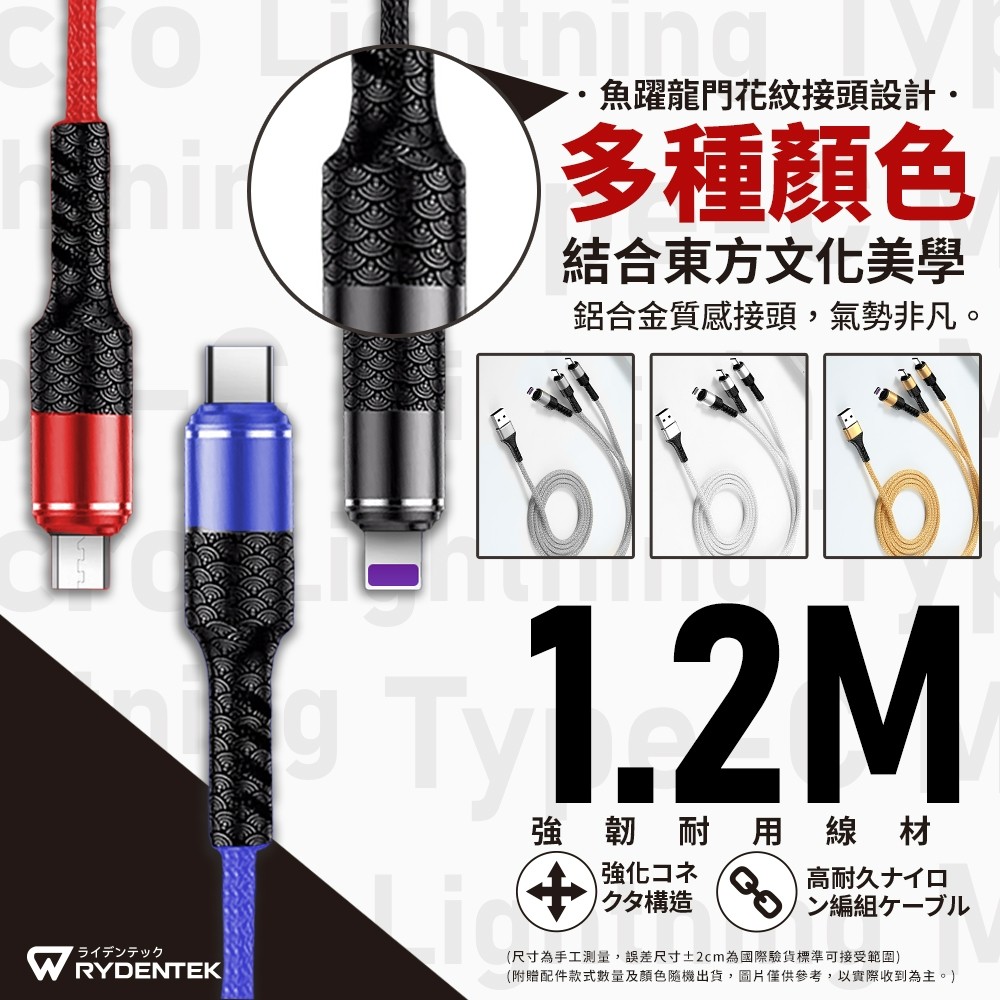 熱賣日本RYDEN TEK 魚躍龍門編織強化2.4A快充三合一傳輸充電線