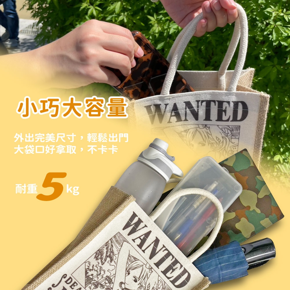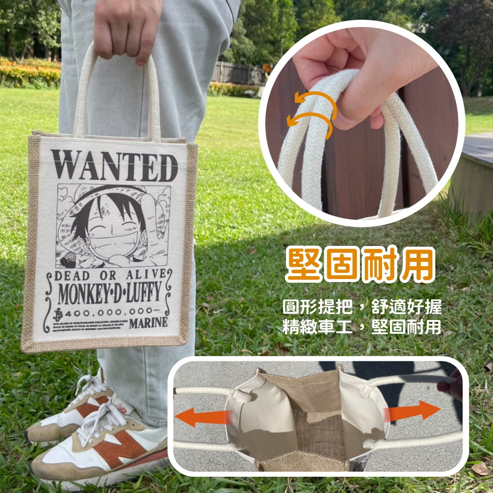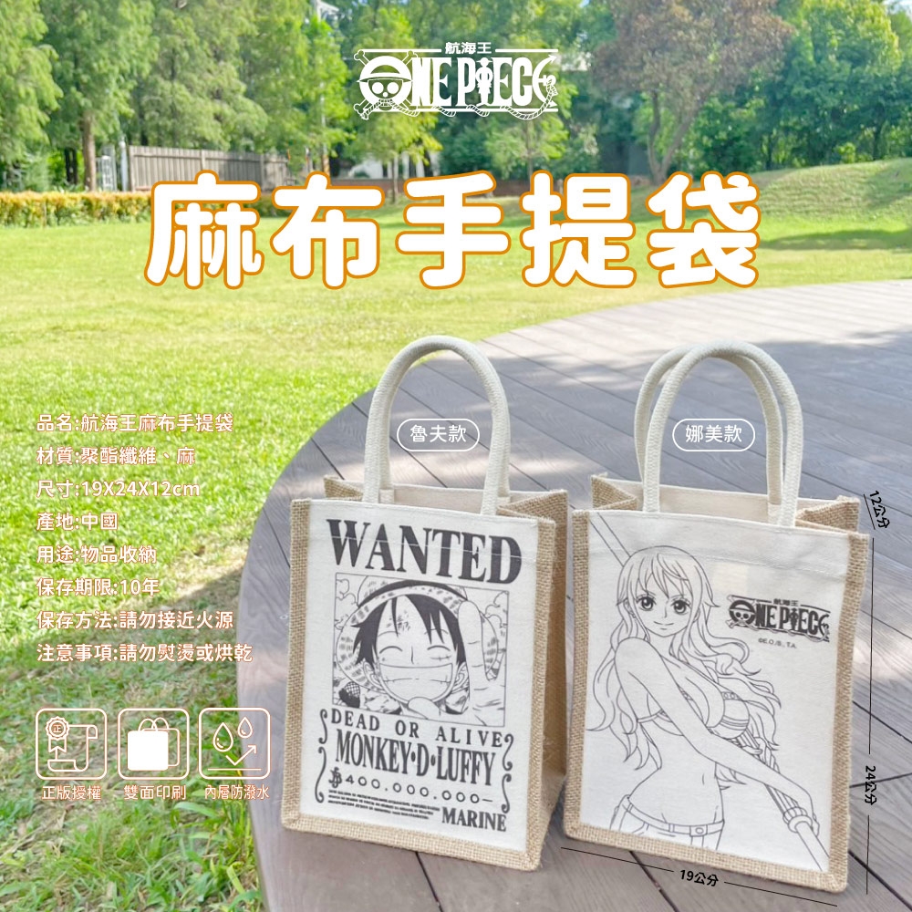人氣最夯🔥大小朋友都喜愛的航海王來囉!🏴☠️ 超人氣角色❤️魯夫❤️娜美變身成手提袋✨ 陪你上山下海走天涯,一起去尋寶藏🏆 正版授權🚢 正反面都有圖案哦🌈 ❤️性感的娜美 ❤️帥氣的魯夫圖案 喜愛航海王的你絕對值得收藏👍 🔷不管提正面、提反面🔶 雙面都很精彩!🌟 讓你成為眾人焦點😉 🛍️小巧大容量 外出完美的尺寸✨一提輕鬆出門✨ 寬大的袋口,讓你輕鬆取放不卡手喔! 一袋可收納☀️折疊傘☀️水瓶☀️鉛筆盒 ☀️手機☀️錢包☀️鑰匙等 滿足你日常外出的需求! 🛍️麻布材質,硬挺有型的袋身 裝東西不怕扁蹋喔! 放在桌面也能站立! 🛍️堅固圓形粗提手 舒適好握,堅固耐用承重好 精緻車縫緊密好品質 不怕一提斷掉,經久耐用 💦內層防水耐髒污 不小心翻灑水或沾到油污 也很好清理👍 🤩還在等什麼! 快提著航海王🏴☠️麻布手提袋🛍️ ⛰️去出遊🏬去購物✈️去旅行 來一場刺激的冒險吧!⚡️ 【材質】聚酯纖維、麻 【規格】約24x19x12cm