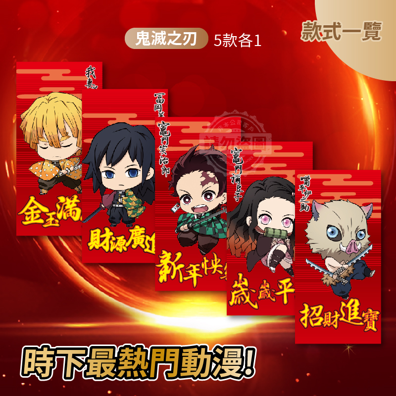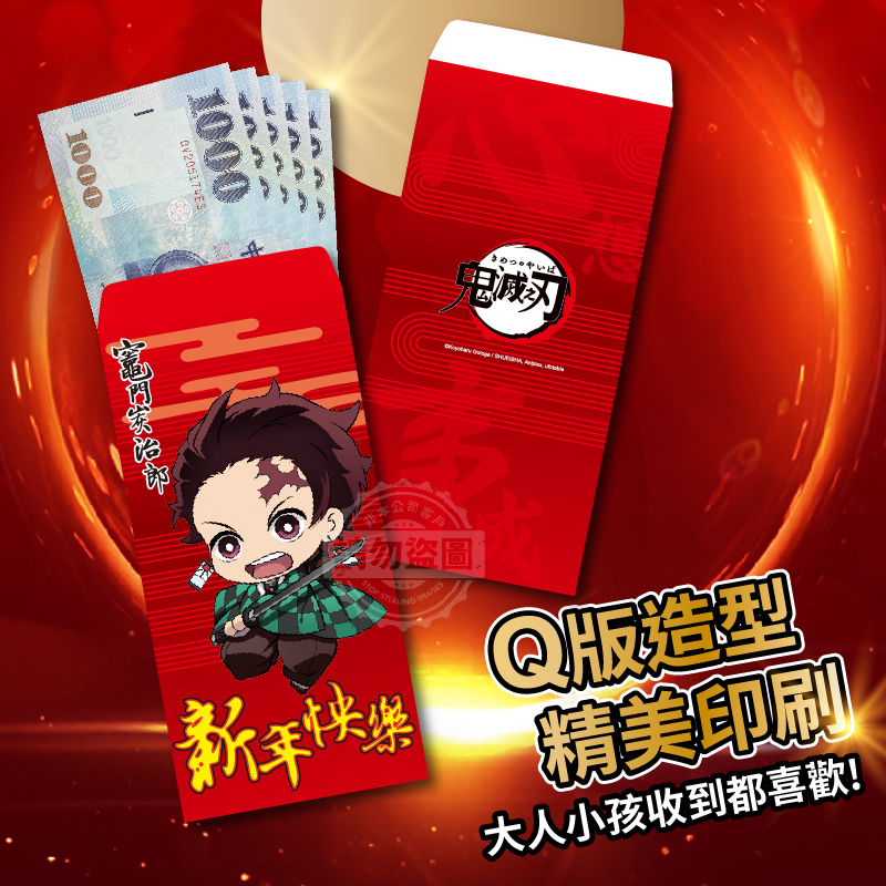 Q版燙金高質感鬼滅之刃紅包袋(5入)